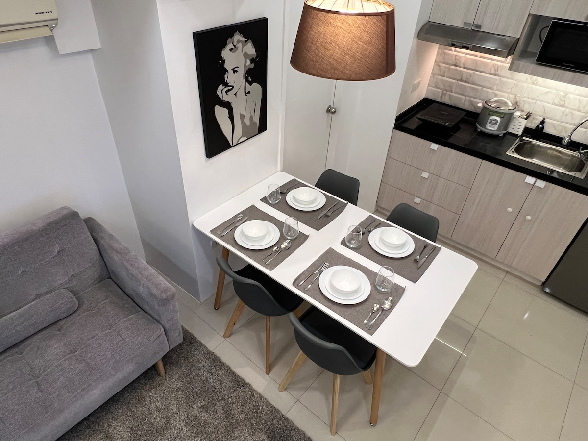 This 2BR bi-level unit at Fort Victoria offers a calming, light-filled space with an amazing view of Bonifacio Global City’s skyline. Thoughtfully designed to make every guest feel relaxed and at home. What you'll love: ✔️ Brand-new mattresses, linens & pillows ✔️ 200Mbps fiber WiFi, Smart TV, cable, Disney+ ✔️ Full kitchen with brand-new appliances ✔️ 2 bathrooms w/ water heaters ✔️ Samsung inverter AC all rooms ✔️ Cozy living room, perfect for 5 guests