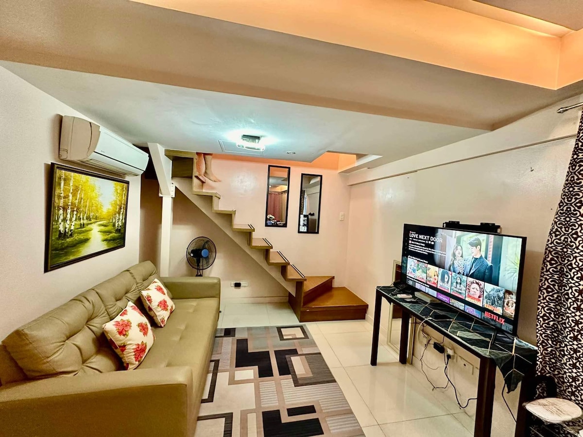 Հարմարավետ 2 սենյականոց երկհարկանի բնակարան BGC-ում | Տեսարան դեպի քաղաք + Wi-Fi + կարաոկե