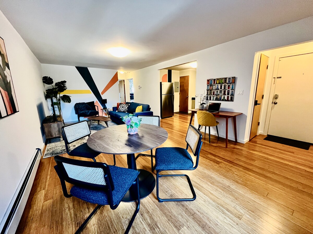 Շատ գեղեցիկ և թարմացված կոնդոմինիում Լինքոլն հրապարակի սրտում ։ Շատ զվարճալի դիզայնի տարրեր և արվեստի գործեր են սպասվում ։ Այս արևոտ կոնդոմինիումը գտնվում է 2 - մետրանոց շենքի 2 - րդ հարկում, որտեղ կան բարեհամբույր հարևաններ ։ Ես և գործընկերս ապրում ենք առաջին հարկում ։ Դուք կարող եք քայլել դեպի այն ամենը, ինչ առաջարկում է Լինքոլնի հրապարակը: Բրաունի գիծը (Western Stop) ընդամենը 2,5 թաղամաս է հեռու քաղաքի կենտրոն հեշտությամբ ուղևորվելու համար: