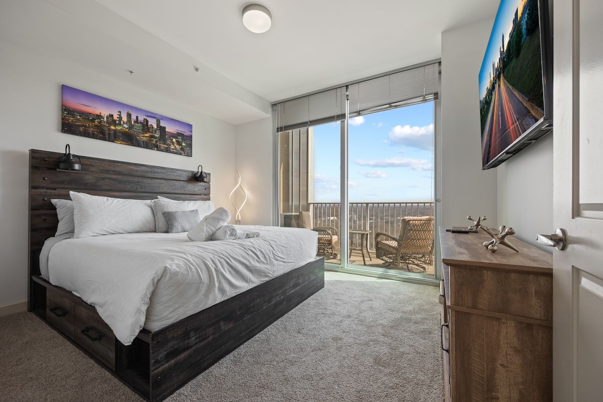 Բարձրացրեք ձեր այցը Ատլանտայում մեր ցնցող պենտհաուսում, որտեղ ժամանակակից դիզայնը համապատասխանում է քաղաքի հմայքին: Թրջվեք հատակից մինչև առաստաղ բացվող պատուհաններից բացվող հիասքանչ տեսարաններով և լիցքաթափվեք ոճի, հարմարավետության և հանգստի համար նախատեսված տարածքում ։ Իդեալական է հանգստյան օրերի հանգստի, երկարաժամկետ այցերի կամ կյանքի լավագույն պահերը նշելու համար ։ Լավագույն ռեստորաններով, գիշերային կյանքով և խոշոր տեսարժան վայրերով ընդամենը մի քանի քայլ հեռավորության վրա ՝ դուք հիանալի տեղ կգտնեք ՝ անմոռանալի նորաձևությամբ քաղաքի լավագույն վայրերն ուսումնասիրելու համար: