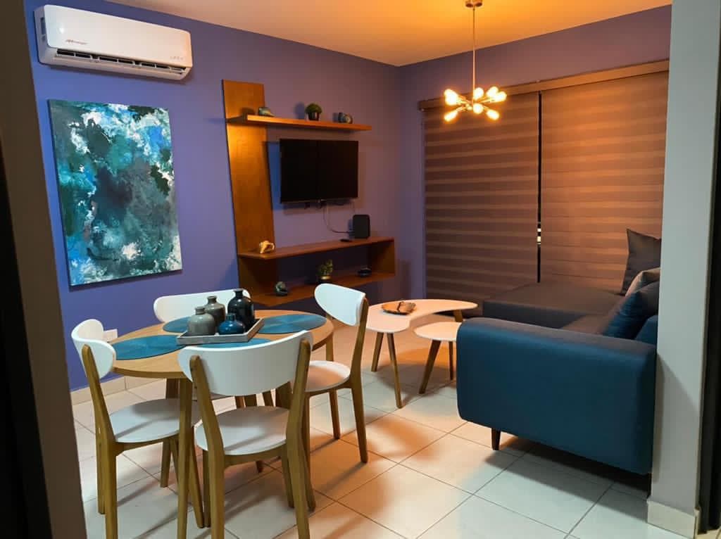 This apartment has a bedroom with 2 queen size beds and full bathroom, fully equipped kitchen, dining room and double sofa bed. The entire space is air-conditioned and equipped with Wi-Fi and Netflix for your comfort. It is located in front of the pool, which has a slide and splash pad, and a few steps from the terrace, perfect for preparing a roast meat or barbecue and enjoying spectacular afternoons and nights. Privileged location:2min. Walked to beach and boardwalk. 5min. Of squares