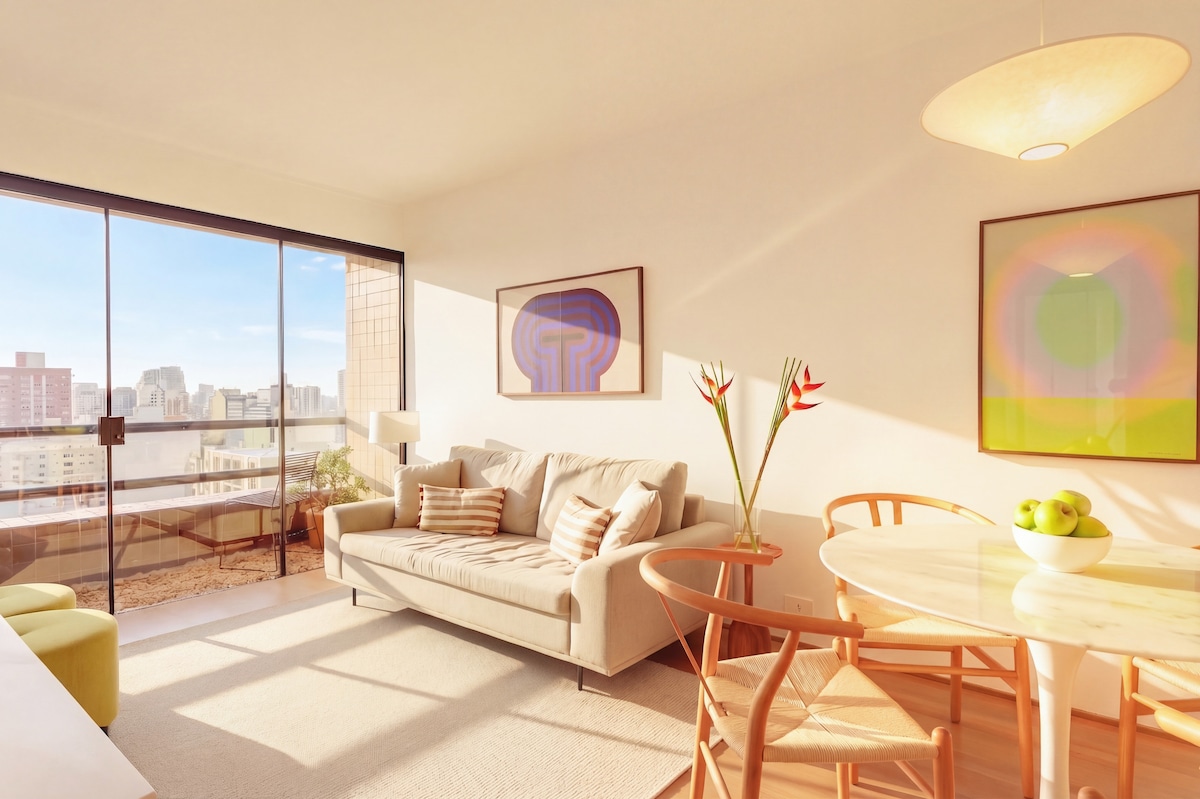 Ամենաբարձր հարկը։ Ամենատպավորիչ տեսարանը։ Ավելի քան 120 հյուր՝ 5 աստղանի գնահատականներով։ 28-րդ հարկից Սան Պաուլոն երևում է ամբողջությամբ։ Երկտեղանի մահճակալ (150–179 սմ), լիովին կահավորված խոհանոց, 350 Մբիթ/վ։ Տեղում գործող պրոֆեսիոնալ մարզասրահ՝ հսկայական, ամբողջությամբ կահավորված Life Fitness սարքավորումներով՝ հյուրանոցային մակարդակի որակով։ Անեզր լողավազան ։ Rebouças պողոտա, 2880 — 5 րոպե Ֆարիա Լիմայից, Պինյեյրոսի սրտում։
