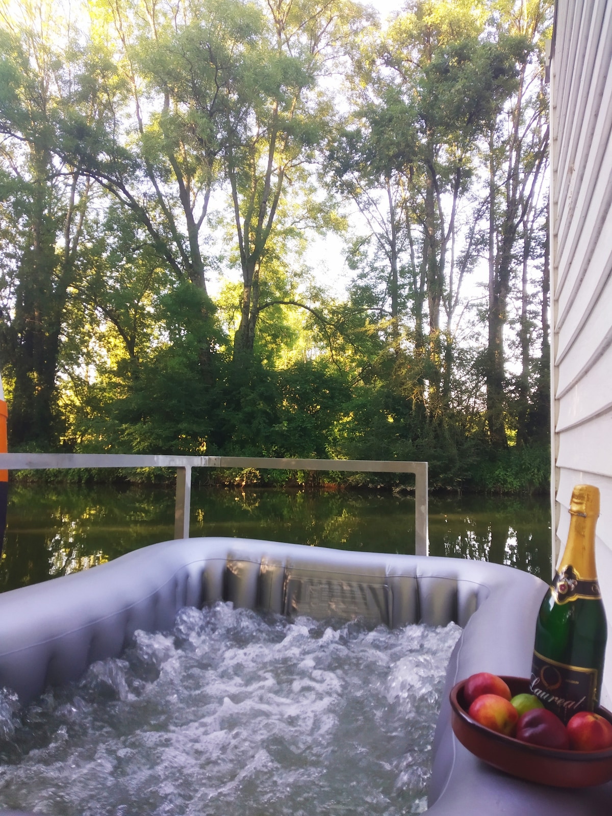 Cottage Flottant Insolite jacuzzi privé vue Canal