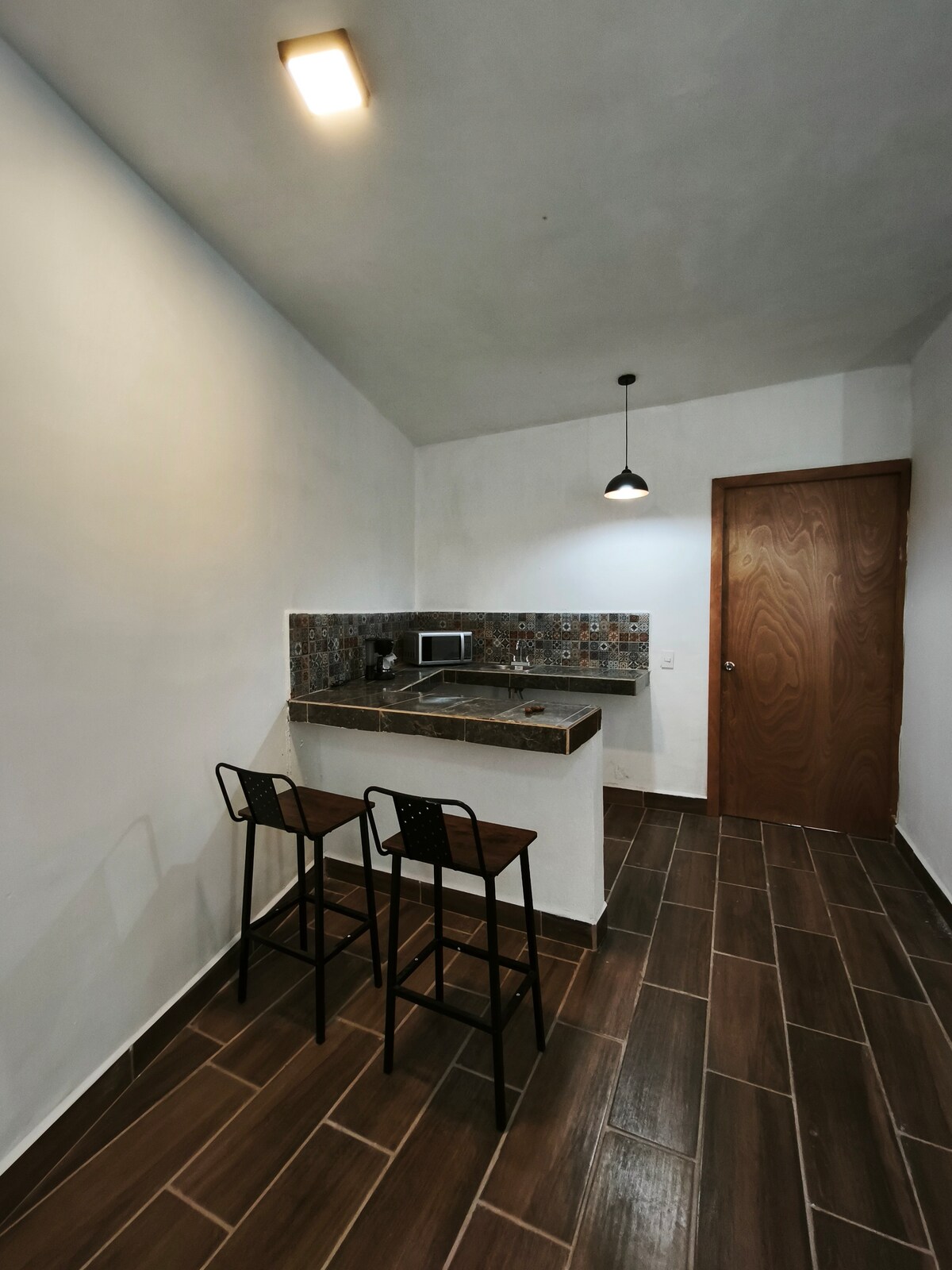 Mini apartment in the north of the city, in a very secure community. Enjoy a cozy and comfortable space with private access and parking spot. Close to Galerias shopping mall, Muguerza Hospital, UANE University, TEC de Monterrey, Plaza Villalta, Médica Bosco, movie theaters, shopping centers, restaurants, and bars. Enjoy a space equipped with a breakfast bar, microwave, and mini-fridge. 50-inch TV with all streaming services: Netflix, HBO Max, Disney+, Paramount+, and high-speed Wi-Fi.