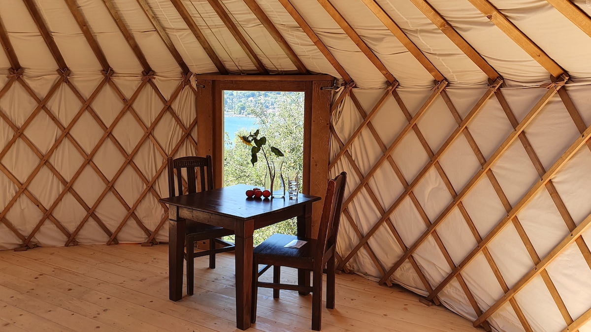 Տեղադրված յուրտ ՝ տանիքածածկ գմբեթաձև պատուհանով և տեսարաններով