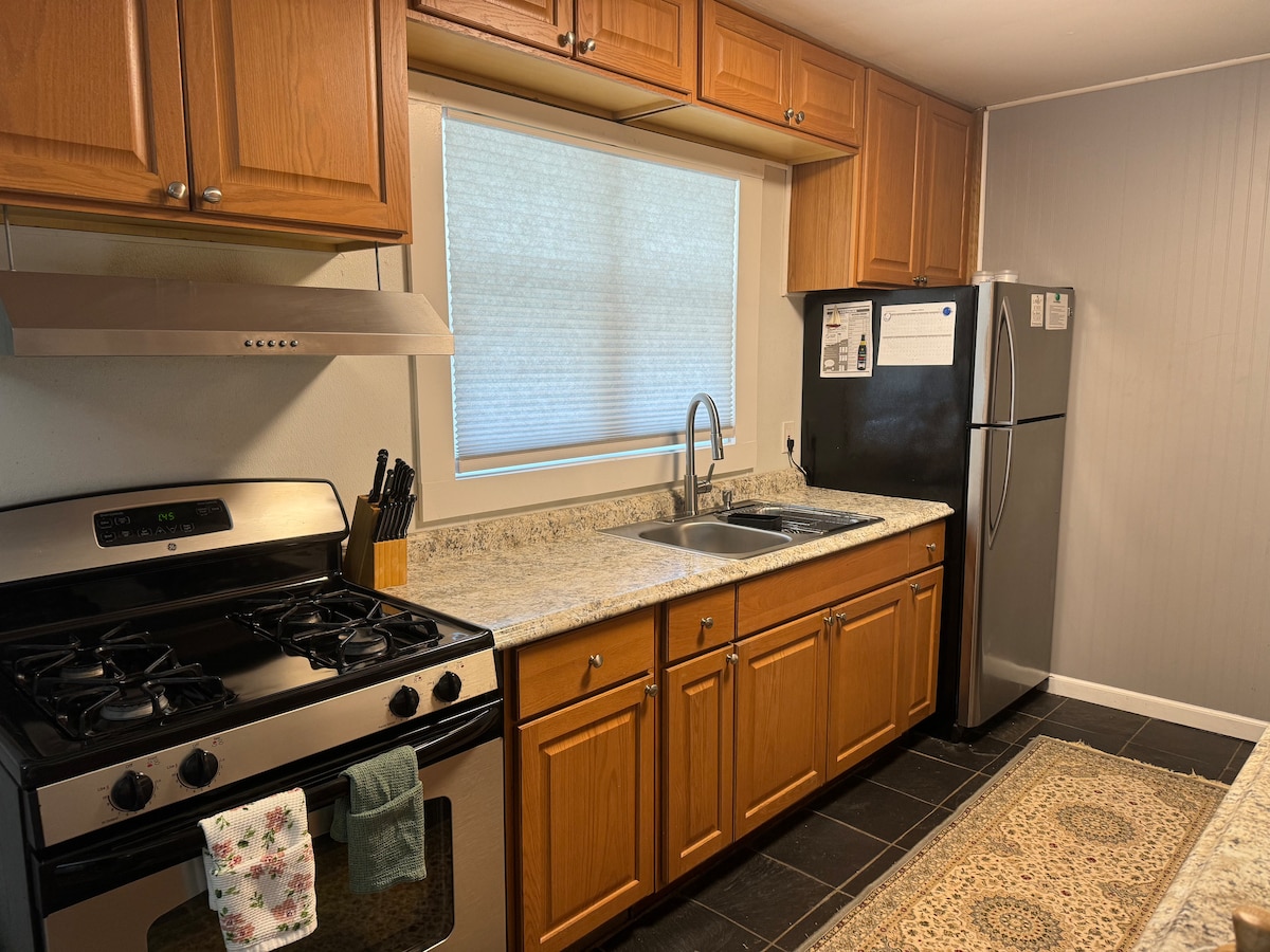 Cranbury մի փոքր գեղատեսիլ գյուղ մոտ 15 րոպե կենտրոնում Princeton & համալսարանի. Ես գտնվում եմ գլխավոր փողոցում ՝ պատմական թաղամասում ՝ ռեստորաններից, փոքր խանութներից, զբոսայգիներից և մի քանի փոքրիկ թանգարաններից ոտքով հեռավորության վրա ։ Վարձակալությունը 1 սենյականոց բնակարան է ՝ առանձնացված ավտոտնակի մոտ ։ Այն ներառում է լիարժեք լոգարան և փոքրիկ խոհանոցիկ, սառնարան, միկրոալիքային վառարան, սուրճ և թեյ և այլ մանր կենցաղային տեխնիկա: 12 րոպե: դեպի Նյու Յորք և Ֆիլա. գնացք 5 րոպե: Նյու Յորքի ավտոբուս և NJ Turnpike 5 mins. այլ գնումներ և այլն: