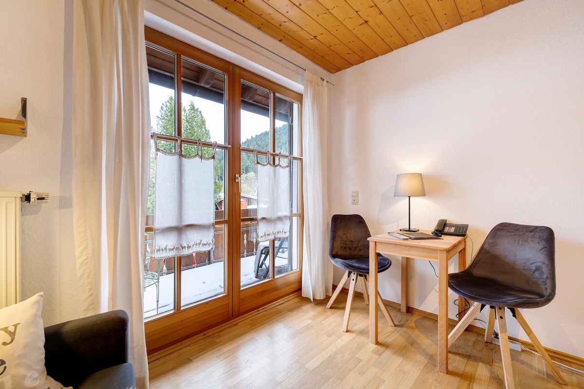 The Room Doppelzimmer 13 is located in Alpirsbach and boasts a beautiful view of the mountain. The 25 m² property consists of 1 bedroom and 1 bathroom and can therefore accommodate 2 people. Additional amenities include high-speed Wi-Fi (suitable for video calls) with a dedicated workspace for home office, a TV, a washing machine, a dryer as well as children's books and toys. In addition, a table tennis table is available for your use. A baby cot is also available.