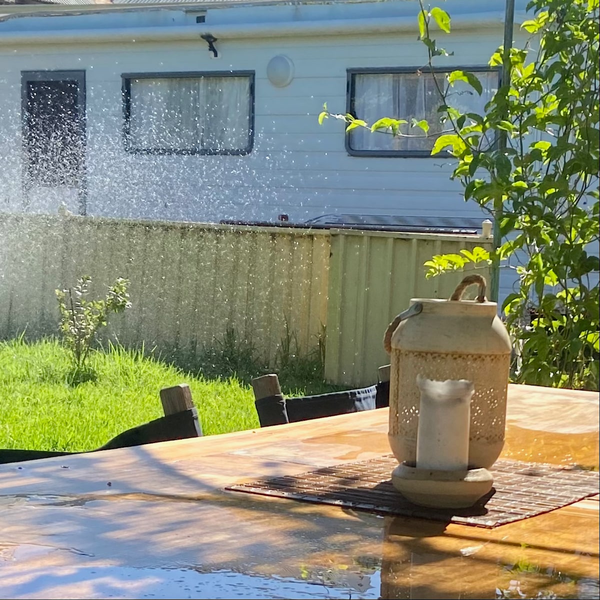 Unique revamp, self contained caravan with kitchen, lounge, Wi-Fi, double bed (plus sofa) and bathroom, with power, air-conditioning / heating unit. Public transport at the door, 5 minute drive to Fremantle and 8 minutes to Port beach. Own parking and entrance, at the end of the driveway in front of the caravan, within a family home environment, with total privacy. Set in a relaxed garden with fruit trees and your own private BBQ and patio.