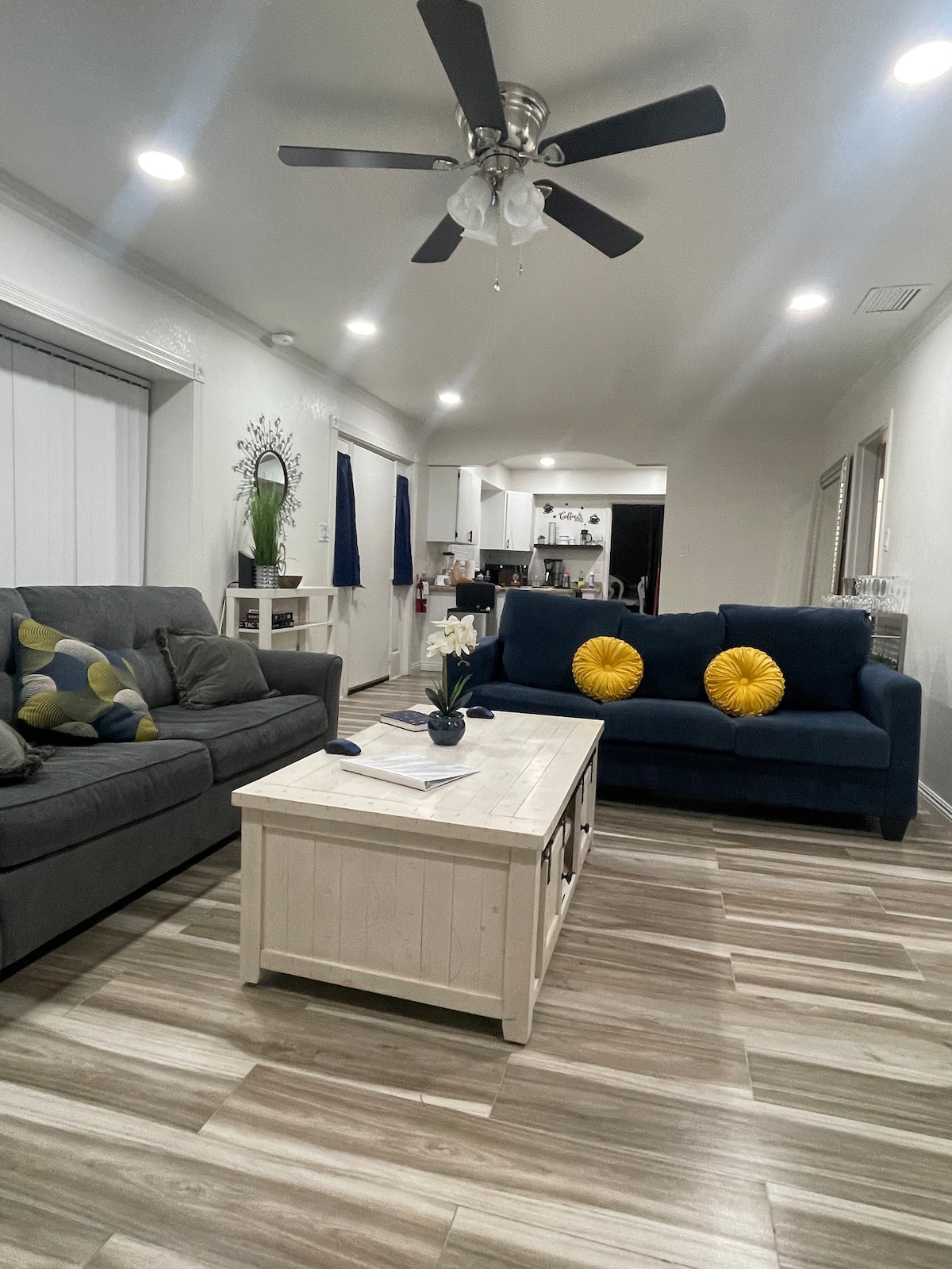 Clean,spacious and private 4-bedroom home designed for relaxing after busy Vegas days or long trip. Open layout, comfortable seating areas, and the coolest temperatures throughout the house make it easy for groups to stay together without feeling crowded. • 4 bedrooms (queen beds) • 2 bathrooms • 2 sofa beds for extra guests • Full kitchen • bluetooth speaker • Fast wifi – 602 Mbps + Smart TV • Brand new AC +auxiliary unit + ceiling fans in every room