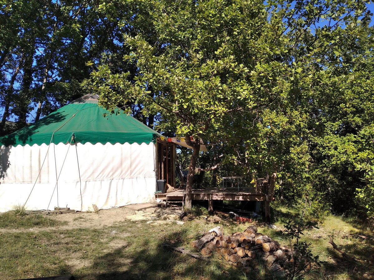 Roulotte typique en bois au milieu de la forêt avec une cabane vintage comprenant la SDB. A cela se rajoute une Yourte de 35 m2 avec baie vitrée et terrasse. Ce lieu est entretenu avec beaucoup de respect pour le vivant, vous pourrez y voir des écureuils, entendre une multitude d'oiseaux, grimper aux arbres, de l'eau de source coule au robinet, un poêle à bois pour l'hiver dans la yourte, la roulotte est aussi chauffée. Et la piscine de mai à octobre. JUILLET ET AOUT = 5 nuits MINIMUM