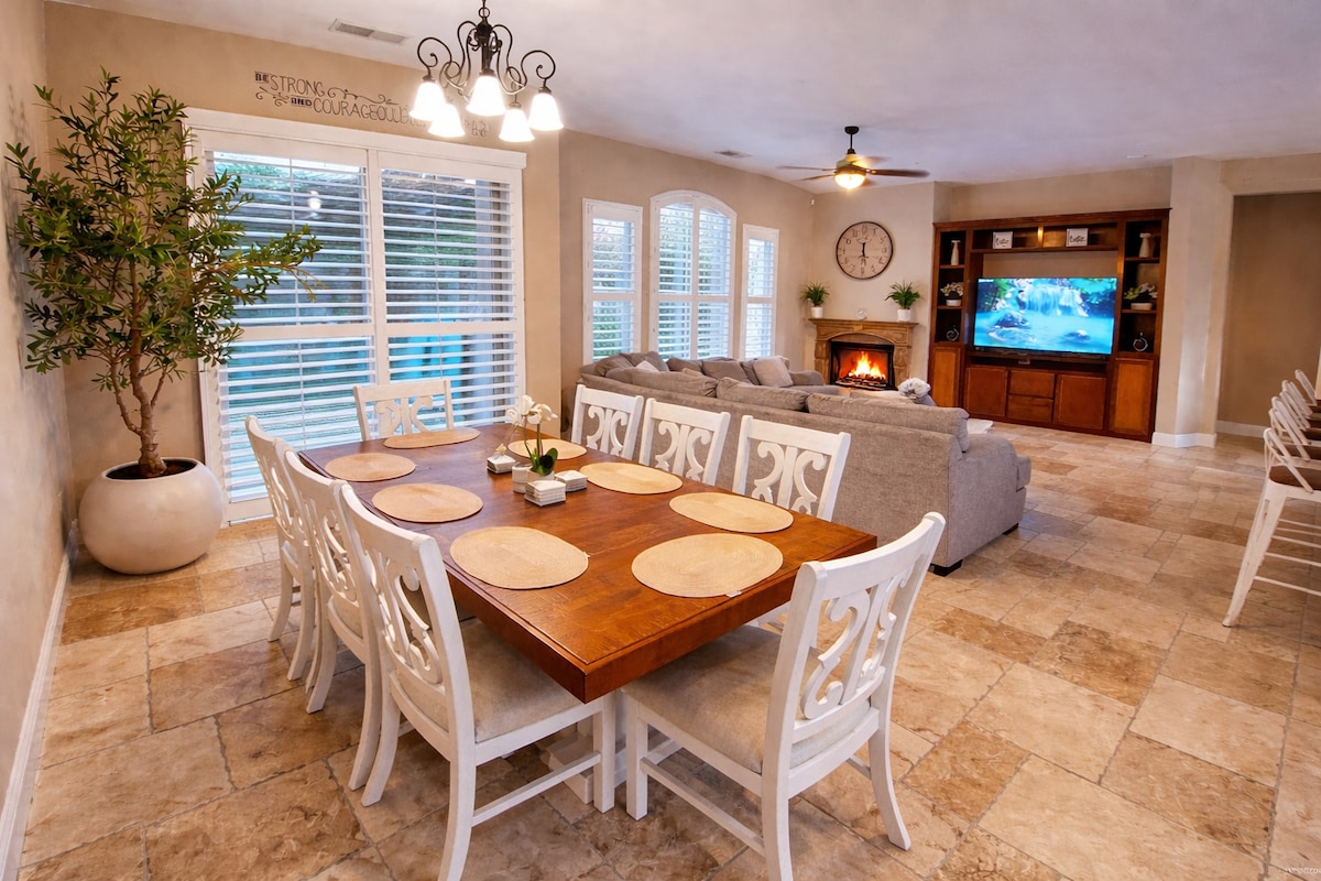 Ֆրեզնոյի շատ սիրված Վուդվորդ Պարկ թաղամասում գտնվող այս ընդարձակ, ընտանիքի համար հարմար տունը առաջարկում է անհրաժեշտ ամեն ինչ անմոռանալի այցի համար։ Վայելեք մասնավոր լողավազանը, բացօթյա պատիոն և ընդարձակ կայանատեղին, որը ներառում է նաև ավտոտների և նավակների համար նախատեսված տեղեր։ Տանը կա 1 king-size չափսի մահճակալ, 2 queen-size չափսի մահճակալ և թախտ՝ առավելագույն հարմարավետության համար։ Յոսեմիտից, լավագույն գոլֆի դաշտերից, գնումների և ճաշելու վայրերից ընդամենը մի քանի րոպե հեռավորության վրա՝ կատարյալ ընտանիքների կամ զույգերի համար, որոնք ցանկանում են հանգստանալ և լավագույնս ծանոթանալ Ֆրեզնոյին։