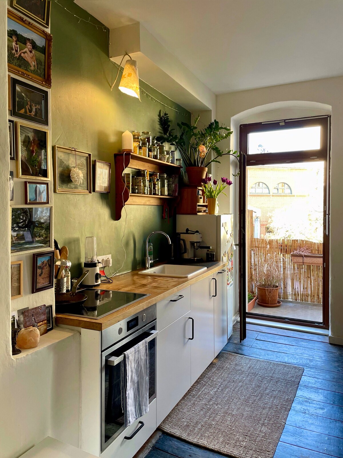 Հարմարավետ, հանգիստ և կենտրոնական բնակարան եք փնտրում Բեռլինի աղմկոտ, ստեղծագործական և գեղեցիկ թաղամասում ։ Դուք ճիշտ տեղում եք ։ Ստուդիան գտնվում է Բեռլինի ամենահայտնի և գեղեցիկ թաղամասերից մեկում ՝ Կրոյցբերգում, տերևոտ Գրեյֆեկիեզի սրտում ՝ իր բազմաթիվ պահպանված պատմական շենքերով: Այս ստուդիայի բնակարանում կան թեթև փայտե հարդարանքներ ՝ սպիտակամորթների դեմ, հակադրվող մոտիվներ, բաց հատակագիծ և գեղեցիկ պատշգամբից բացվող նախաճաշի վայր, որը նայում է շենքի տերևաթափ ինտերիերին ։