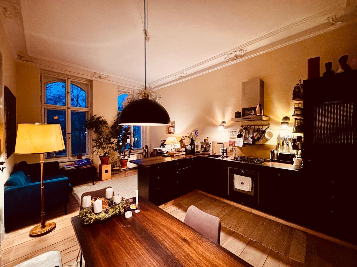 Հաճելի բնակարան տիպիկ բեռլինյան հին տանը, հիփ Նեյկյոլնի սրտում, յուրահատուկ Tempelhof Flughafenfeld - ից 100 մ հեռավորության վրա և Hermannstr S - U Bahn կայարանից 5 րոպե հեռավորության վրա: Վայելեք ամռանը պատշգամբում (կամ Flughafen Feld - ում) մայր մտնող արևը կամ ձմռանը հրդեհի վայրի դիմաց ռոմանտիկ մթնոլորտը:
