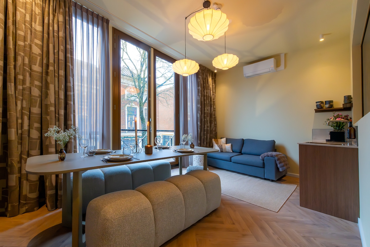 Welkom bij Gelk. Drie luxe appartementen midden in de bruisende binnenstad van Groningen. Geen receptie, geen gedoe - gewoon keyless naar binnen en genieten. Uiteraard wel met een persoonlijke touch! Ideaal voor een midweekje weg met vrienden, een weekend met het gezin of een paar dagen ontspannen met collega's. Het Martini appartement bevindt zich op de eerste verdieping aan de voorzijde van het pand en biedt daarmee een mooi uitzicht op de gezellige Gelkingestraat.