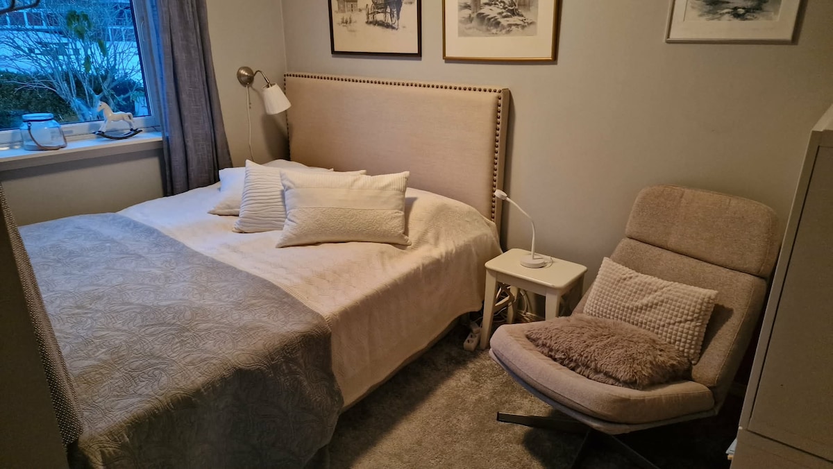Velkommen til dette sjarmerende huset som ligger rett ved sjøen i vakreste Drøbak. Det er egen inngang til huset og et område man kan grille og spise utenfor. Det er kort vei til sentrum, badestrender og restauranter, så dette er virkelig en fin plass til å nyte sommerdagene. Én bilplass kan disponeres, men det må avtales på forhånd. Ved to gjester: si ifra om det ønskes separate rom. Meld ifra om dere trenger babyseng (reiseseng).