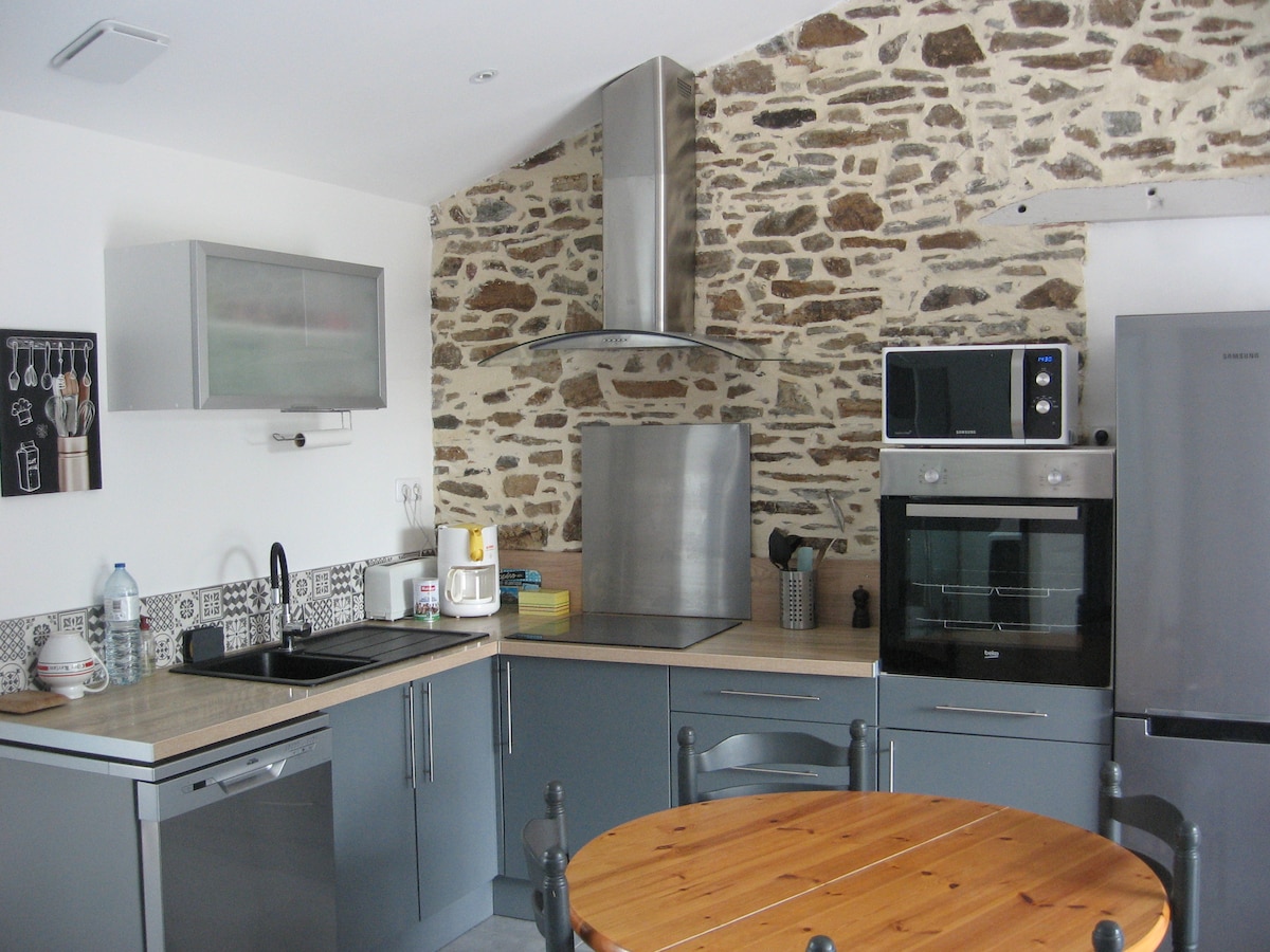 Նոր տուն ** 110 մ² 6 հոգու համար (մինչև 8), առանց աստիճանների, շատ լուսավոր, հանգիստ ։ Մեծ կտուր ՝ գյուղական վայրերի գեղեցիկ բաց տեսարաններով, հյուրասենյակ ՝ 52մ ² բաց խոհանոցով, հետևի խոհանոց, 2 ննջասենյակ, ցնցուղի սենյակ և առանձին զուգարան ։ Գտնվում է Սեն - Վյաուդ գյուղից 2 կմ հեռավորության վրա, հանգստի բազայով լիճ (թենիս, ջրային լեռնադահուկային վերելակ, սքեյթ պարկ), քայլում է տնից, մեքենայով ՝ 15 րոպե հեռավորության վրա ՝ լողափեր, Լա Բոլե, Գուրանդե, Նանտես 35 րոպե հեռավորության վրա ։