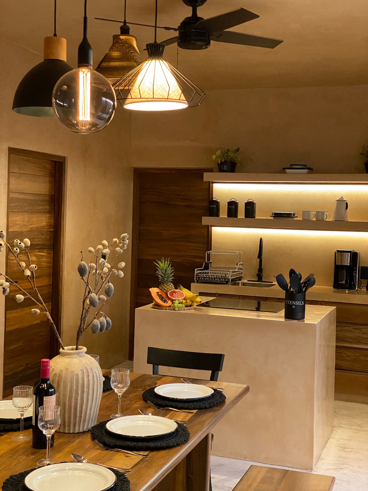 The second floor studio apartment at Hotel & Suites Oasis Bacalar is super practical, while also cozy and charming Your studio apartment has: - A Queen bed situated in a semi-separate area of the apartment - A fully equipped kitchen - Full size fridge, microwave, blender, toaster, plenty of pots/pans and various kitchen equipment - A hardwood dining table - A sitting area with a sofa and table. - A balcony with chairs and table, with view to the pool - Fast wifi - Tv with Roku. - Prime location!