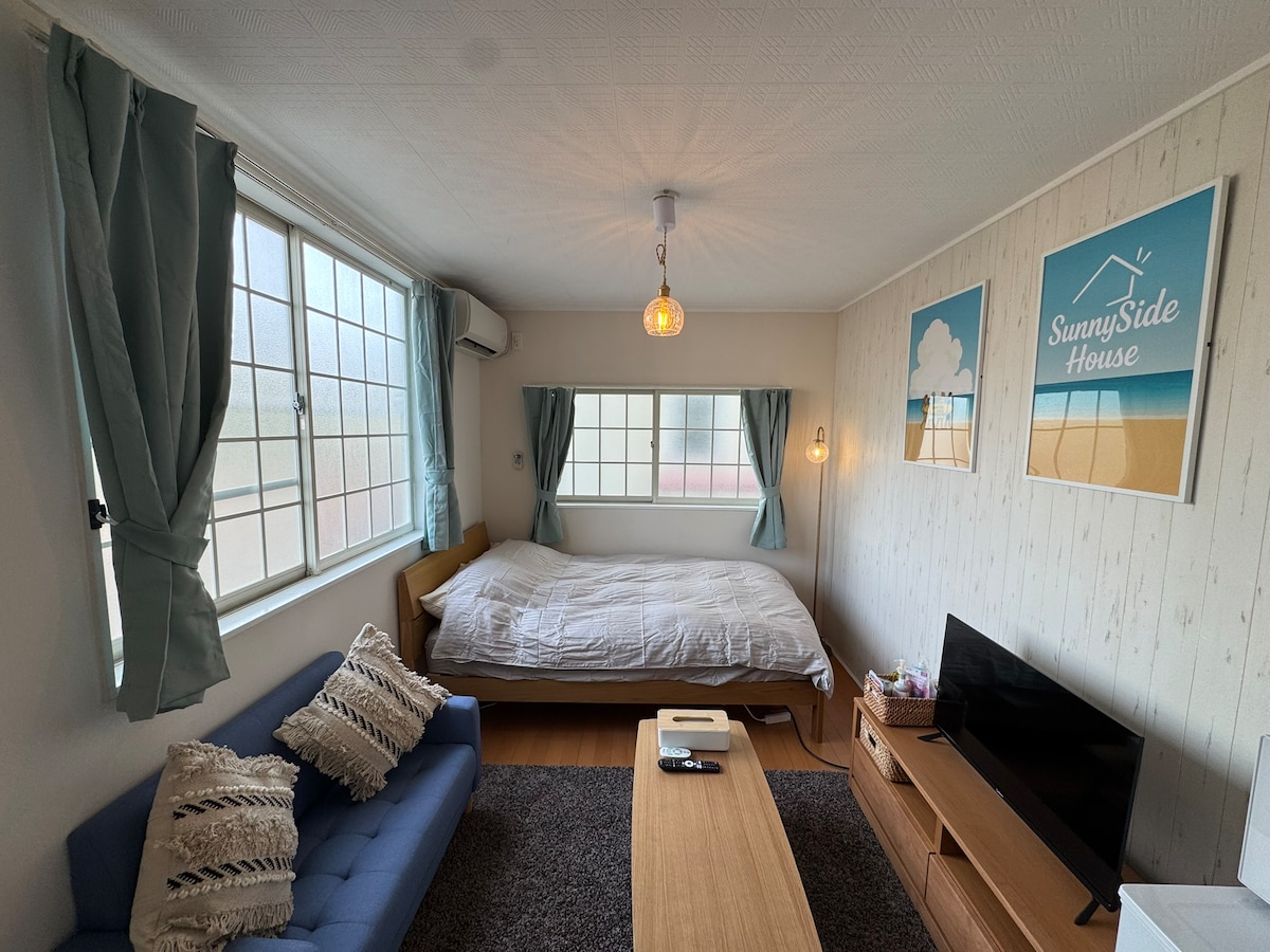 Բնակարանի առաջին հարկում գտնվող սենյակը, որն ավարտվել է 2023 թվականի սեպտեմբերին, Այն հարմարավետ տարածք է, որը նույնքան պարզ և մաքուր է, որքան մեկ սենյակը հյուրանոցում: Գտնվելով հանգիստ բնակելի թաղամասում ՝ կարող եք հանգիստ և հանգիստ ժամանակ անցկացնել ։ Մուտք Կուգենումա Կաիգան կայարանից 500 մ հեռավորության վրա ՝ Օդակյու գծի★ վրա, 7 րոպե ոտքով 8 քայլ դեպի★ ծով Մոտակայքում կան շատ համեղ և ոճային ռեստորաններ, և այն շատ հարմար է սուպերմարկետներից, հարմարավետ խանութներից և թմրանյութերի խանութներից 5 րոպե հեռավորության վրա: Իդեալական է Էնոշիմայում և Կամակուրայում տեսարժան♪ վայրեր այցելելու համար♪ Դուք կարող եք վայելել տեսարժան վայրեր դեպի Էնոշիմա, Կամակուրա և Հակոնե Օդակյու գծի, Էնոդենի և Շոնան Մոնորեյլի տեսարժան վայրեր, հեծանվավազք ծովի երկայնքով վարձակալության ցիկլից և վայելել հարևանությամբ գտնվող հետաքրքիր խանութների համեղ խանութներն ու շրջագայությունները: [Խորհուրդ տրվող միջոցառումներ] Խոսելով Էնոշիմայի★ ՝ ծովային մարզաձևերի մասին ։ Ոտքով հեռավորության վրա գտնվող շատ սերֆինգի դպրոցներ և սուպեր դպրոցներ ։ . ★ՀեծանիվՈտքով մինչև 5 րոպե վարձակալության ցիկլով Wi - Fi - ը հասանելի է, ինչը այն իդեալական է դարձնում հեռավար աշխատանքի համար ։ Հանգիստ և հարմարավետ♪ Կարող եք նաև ցանկացած պահի դիտել Netflix - ը♪