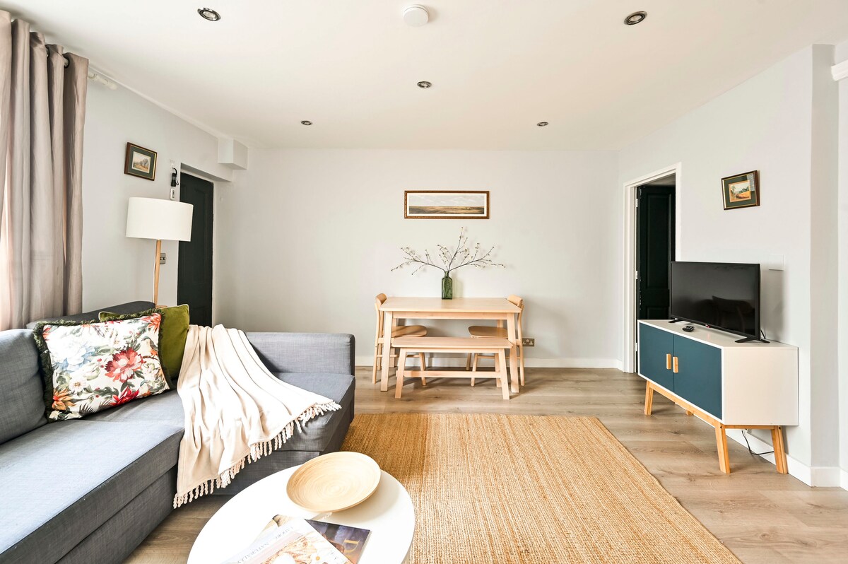 Enjoy an evening glass of wine surrounded by greenery on the private garden terrace of this Italian-inspired apartment. Inside, a generous cream corner sofa makes it easy to slow down, switch off, and settle in. Set in SW10, the apartment offers a quieter residential feel while staying well connected to the rest of London. This is a place with its own sense of style — thoughtfully put together, a little unexpected, and refreshingly different from the usual stay.
