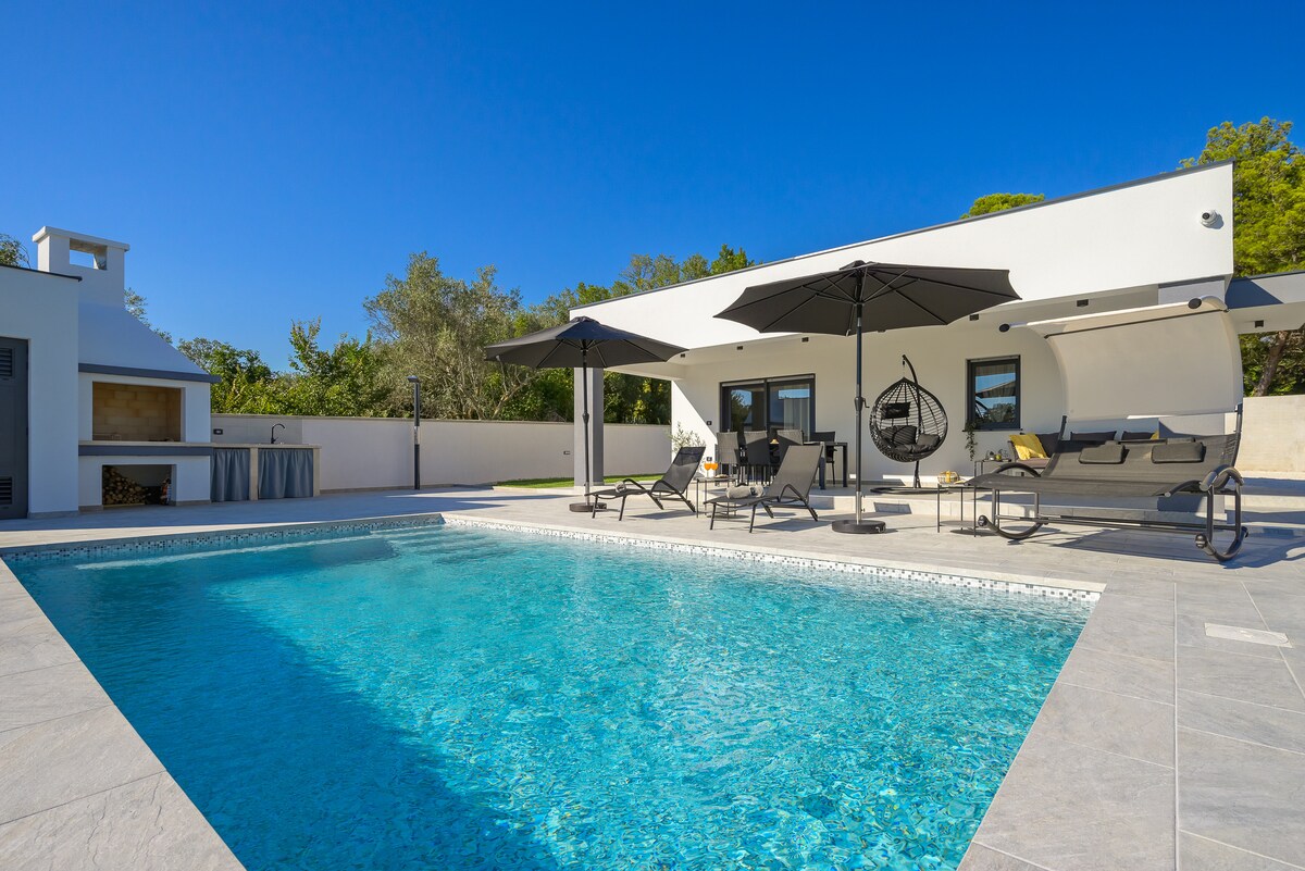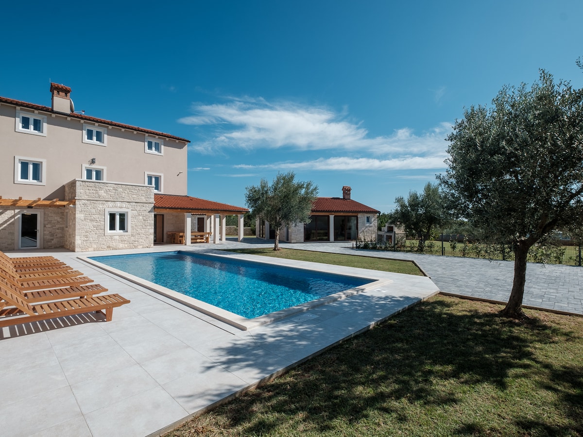Բոլորովին նոր շքեղ դիզայնով վիլլա, որը գտնվում է Խորվաթիայի Իստրիա նահանգի Բեյլ խաղաղ գյուղի սրտում ։ Վայելեք խաղաղությունն ու հանգիստը բաց տարածքում ՝ միջնադարյան գյուղի գեղեցիկ տեսարանով ։ Տունն ունի գեղեցիկ, խնամված այգի ՝ շրջապատված բնությամբ: Լողացեք ջեռուցվող, բացօթյա լողավազանում կամ հանգստացեք լողավազանի մոտ ՝ հին ձիթապտղի ծառի ստվերում ։