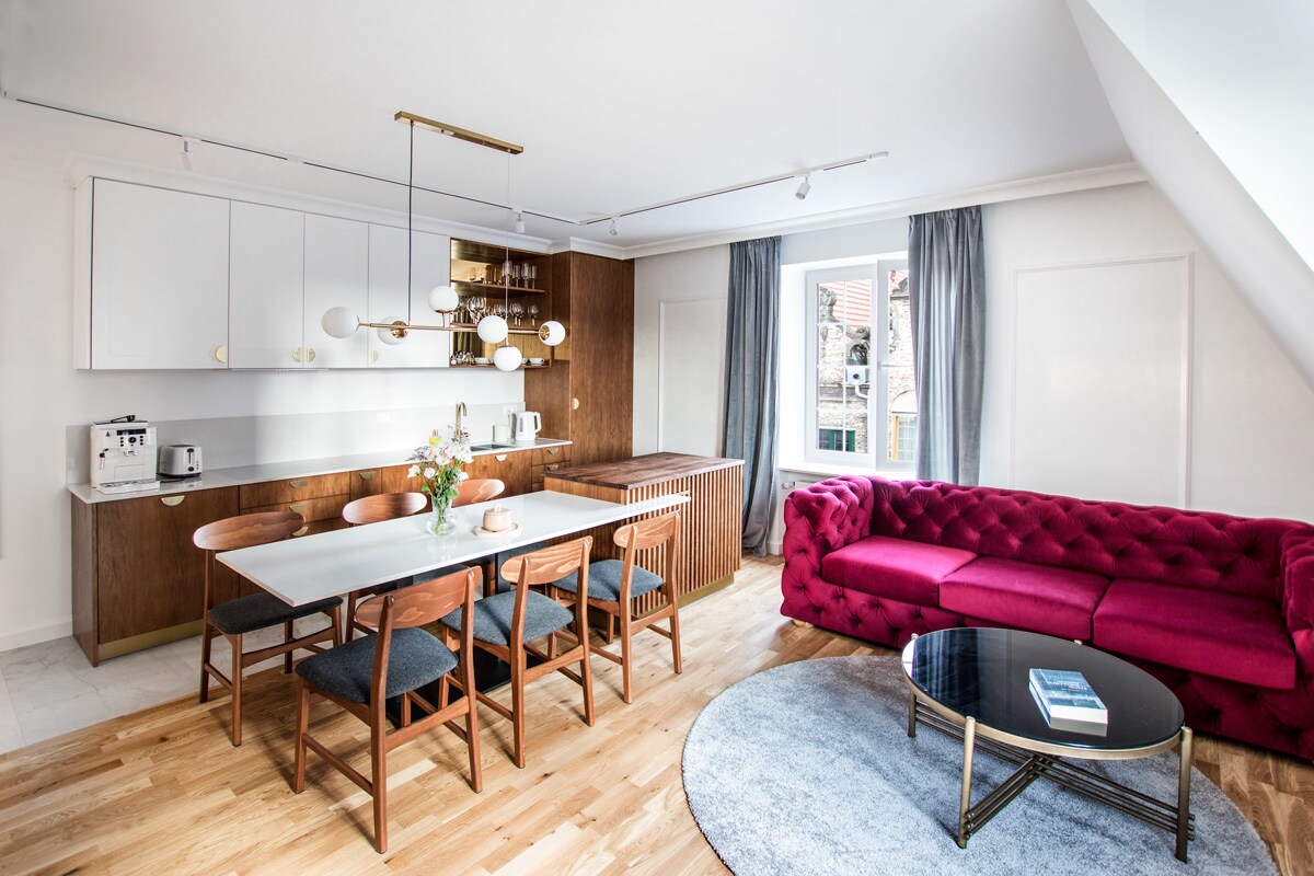Մեր բնակարանը յուրահատուկ է բազմաթիվ պատճառներով։ Նախ՝ այն գտնվում է հենց գեղեցիկ, կյանքով լի Դլուգա փողոցում։ Այն շատ լավ հարմարություններով է, այնպես որ հյուրերն ունեն հարմարավետ այցի համար անհրաժեշտ ամեն ինչ։ Մեծ խոհանոց՝ խոհարարության սիրահարների համար, չափազանց հարմարավետ բազմոց և գրքերով լի գրադարակներ՝ նրանց համար, ովքեր սիրում են խորասուզվել ընթերցանության մեջ, սեղանի խաղեր և զբաղմունքներ երեխաների և ամբողջ ընտանիքի համար։
