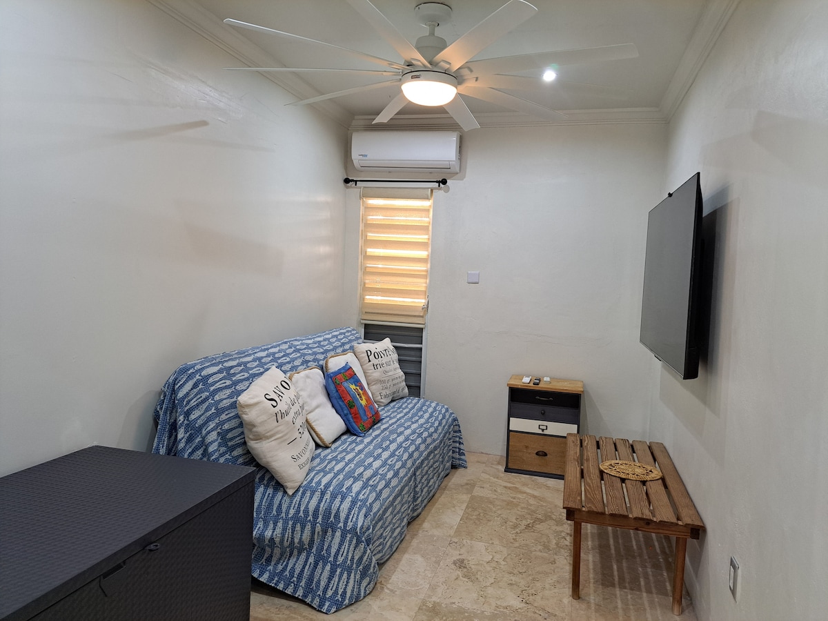Ընկղմվեք տեղական Կարիբյան ավանի բնական գեղեցկության մեջ ՝ Անտիգուայի լավագույն լողափերից մեկից ընդամենը 1 -2 րոպե հեռավորության վրա ։ Առանձին կրկնակի դռները ձեզ տանում են դեպի ներքևի բաց հատակագծով ստուդիա ՝ լիովին կահավորված խոհանոցով, երկտեղանի մահճակալով, ցնցուղի սենյակով և A/C - ով: Վայելեք մի բաժակ գինի և մայրամուտ պատիոյից ՝ մեկօրյա մահճակալով և խորովածով: Ներառված են նաև լողափնյա սպասասրահներ և հովանոցներ Crabbe Hill Beach - ում ։ Կատարյալ է ստեղծագործական հանգստի, միայնակ ճանապարհորդելու կամ ռոմանտիկ հանգստի համար ։