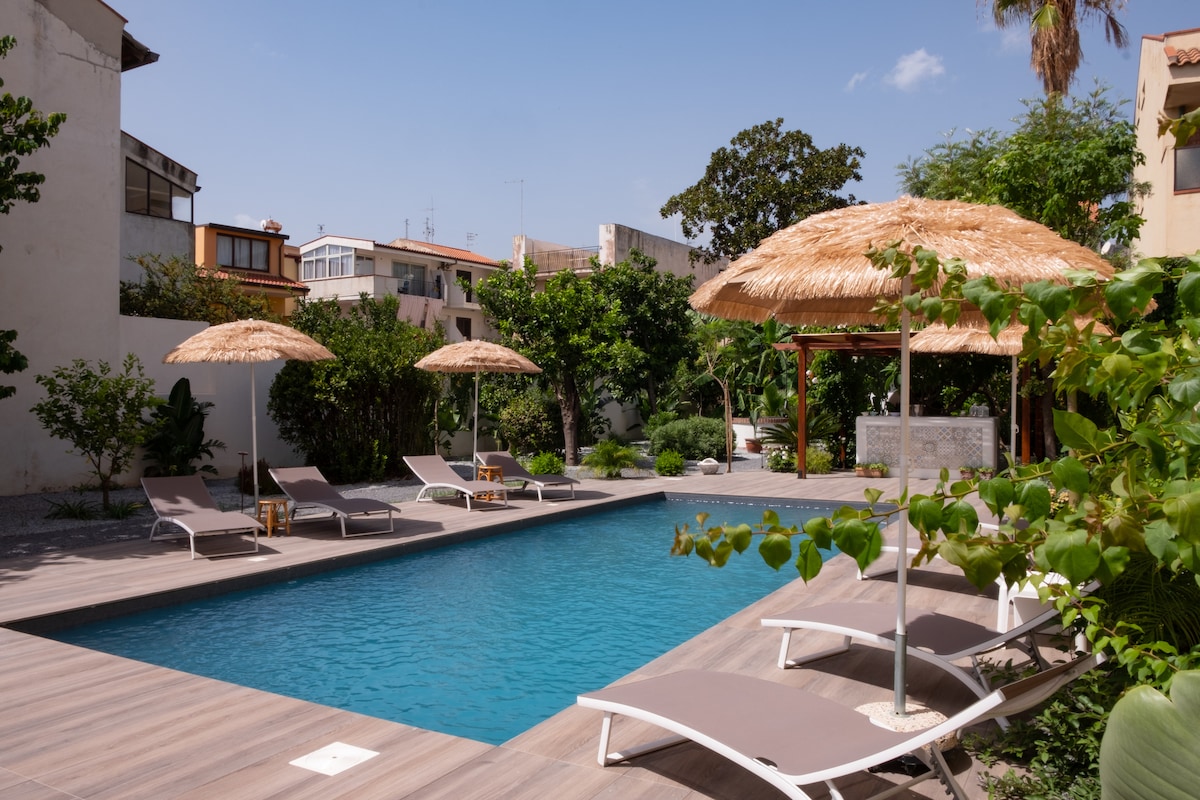 *Շքեղ վիլլա* Էտնա, Տաորմինա և Ծովափնյա տեսարան լողավազանով