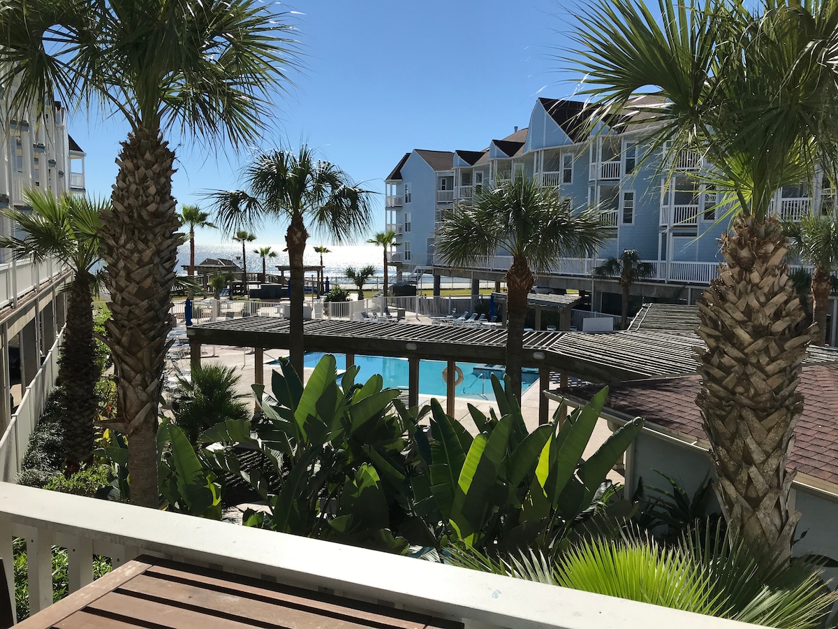 Նոր վերանորոգված ՝ հարմարավետ լողափնյա քոթեջով ։ Իմ կոնդոմինիումը ԼՈՂԱՓՈՒՄ Է ։ Մի անցեք բազմազբաղ մայրուղին ձեր ընտանիքի հետ: Սենյակ 6 հոգու համար: Queen Կարգավորելի մահճակալ և 150 -179 սմ մահճակալով բազմոց ՝ 2 երկհարկանի մահճակալով ։ Նոր խոհանոց, 2 հարթ էկրանով հեռուստացույց: Անվճար WiFi և NetFlix: Համալիրն ունի մեծ ջեռուցվող արևադարձային լողավազան ՝ 3 ջակուզիով: Առանձին մուտք դեպի լողավազան և լողափ ։ Սեփականությունը դարպասված է անվտանգությամբ ։ Ձեր թանկարժեք իրերը պահելու ապահովությունն անվճար է ձեր օգտագործման համար: 10 րոպե Moody Gardens - ից կամ Pleasure Pier - ից: Ձեռքի թեքահարթակներ