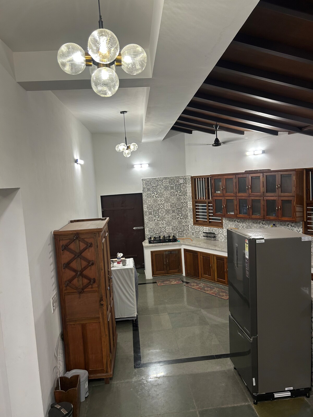 Նոր վերանորոգված 2 BHK ՝ A/C - ով, համեղ կահույքով, լուսավորությամբ, քաղաքի բոլորովին նոր հարմարություններով, խաղաղ, բնակելի վայրով ։ Մենք ձգտում ենք ապահովել բարյացակամ, մաքուր և մատչելի տուն ։ Դահլիճ ՝ բազմոց, Դիվան, 43դյույմանոց LED հեռուստացույց, DTH, Wi - Fi Ճաշ ՝ 4 նստատեղով սեղանի աշխատանքային տարածք Ննջասենյակ (2 )՝ 2 երկտեղանի մահճակալ, 2 հատակի ներքնակ , A/C, պատուհանի տակդիրի կախիչ Խոհանոց ՝ սառնարան, ինդուկցիոն սալօջախ, հիմնական պարագաներ Լոգասենյակ (2 )՝ Liq օճառ, գեյզեր, արևմտյան զուգարաններ Կոմունալ ծառայություն ՝ լվացքի մ/գ, UPS, կտորի չորացման տակդիր
