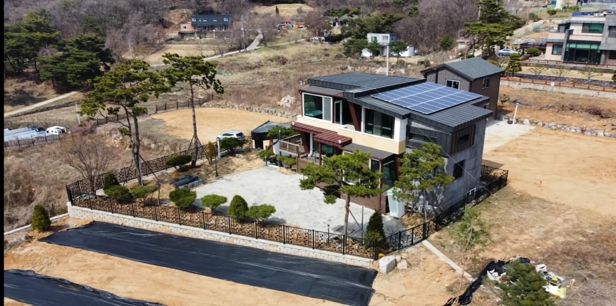 Այն գեղեցիկ քոթեջ է ՝ կտուրով և ջակուզիով, որը գտնվում է Գանգհվա - դո նահանգի Մանիսան քաղաքի մուտքի մոտ ։ Մենք այն կառուցել ենք խնամքով, որպեսզի կարողանաք խաղալ ձեր ընտանիքի և երեխաների հետ: Կա 3 լոգասենյակ և ննջասենյակ, այնպես որ 3 ընտանիքներ կարող են օգտագործել այն առանց անհանգստության: Յուրաքանչյուր սենյակ ունի օդորակիչ, այնպես որ այն հաճելի է նույնիսկ ամռանը: (Լրացուցիչ մանրամասների համար տե ՛ ս ստորև)