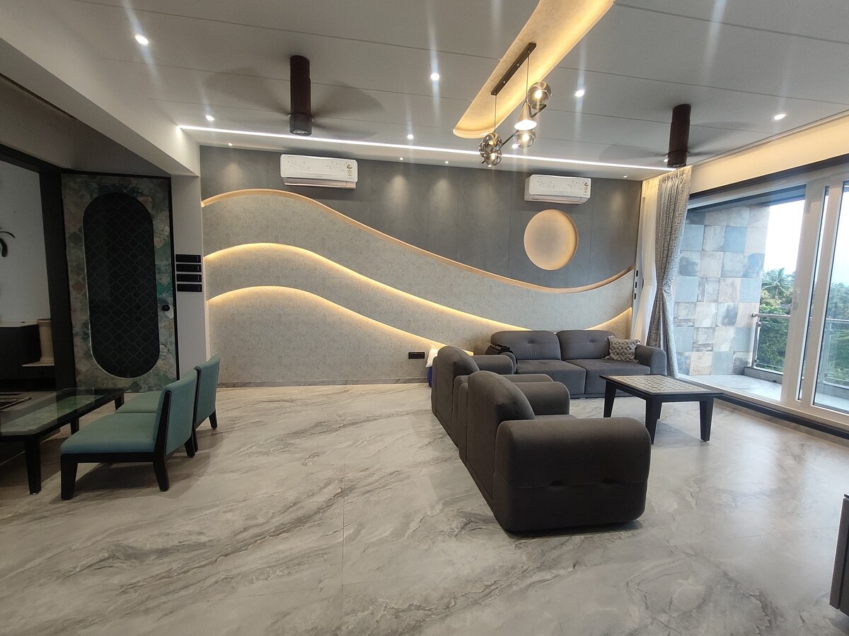 Բարի գալուստ Sea Breeze. ձեր ընտանիքի համար հարմար հանգիստը ՝ ծովի ցնցող տեսարաններով: 1. Ընդարձակ հատակագիծ ՝ - 2 շքեղ գլխավոր ննջասենյակ - Հարմարավետ ուսումնական սենյակ - Նորաձև կահավորված սրահ - Լիովին կահավորված խոհանոց 2. Ժամանակակից հարմարությունները ներառում են ՝ - Գերարագ WiFi - Մեծ հեռուստացույց ՝ ժամանցի համար - Հարմարավետ սառնարանը - Լվացքի մեքենա ՝ լրացուցիչ հարմարության համար 3. Կենտրոնը գտնվում է - Հեշտ մուտք դեպի տեղական տեսարժան վայրեր - Ճաշելու տարբերակներ, այդ թվում ՝ Swiggy և Zomato առաքում