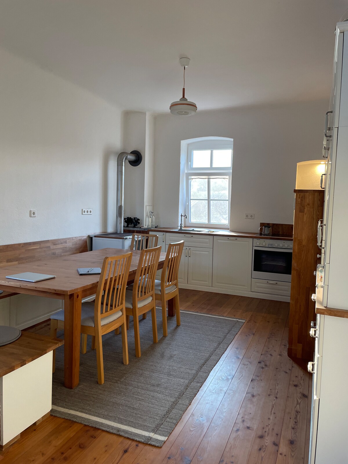 Herzlich willkommen in der gemütlichen und einzigartigen Atmosphäre unserer historischen Villa. Zur Verfügung stehen zwei Zimmer im ersten Stock - ein Wohnzimmer und ein Schlafzimmer mit Doppelbett. Daran anschließend ist das Badezimmer mit Dusche und ein separates WC. Beides steht euch zur Alleinnutzung zur Verfügung. Die Fenster der Zimmer geben einen Blick auf den Garten preis, der ebenso gerne genutzt werden kann. Sitzmöglichkeiten sind vorhanden.