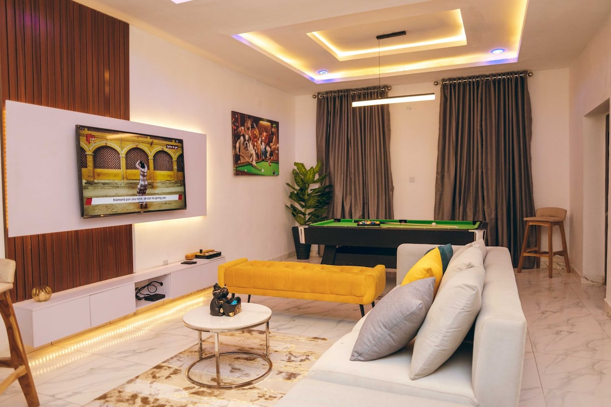 Welcome to an Unmatched Luxury Experience in Garki, Abuja! Our luxury apartment offers: ✔️ 24/7-Armed Security ✔️ Uninterrupted Power supply ✔️ Complimentary Light Breakfast ✔️ Free High-Speed Wi-Fi ✔️ Fully Equipped Kitchen ✔️ Wash & Dry Machine ✔️ Daily Housekeeping ✔️ 65” 4K TV, & Streaming Services ✔️ Cozy Ensuite Bedrooms & Private Bathrooms ✔️ HD Smart TV in all rooms Enjoy the perfect blend of elegance, security, and convenience in the heart of Abuja. 🌟 Stay once, remember forever!