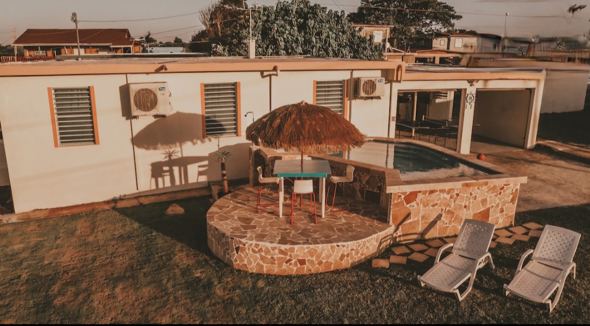 Atlantikeña is a relaxing, very quiet, unique, peaceful and in a friendly residential neighborhood located in Islote, Arecibo. The house is perfect for maximum of 5 guests. Fully fenced with an ocean view balcony where you can enjoy a cool ocean breeze. A garage with a ping-pong table, large front yard with a relaxing pool. Actively recording devices: audio and visual cameras overlooking the exterior of the house.