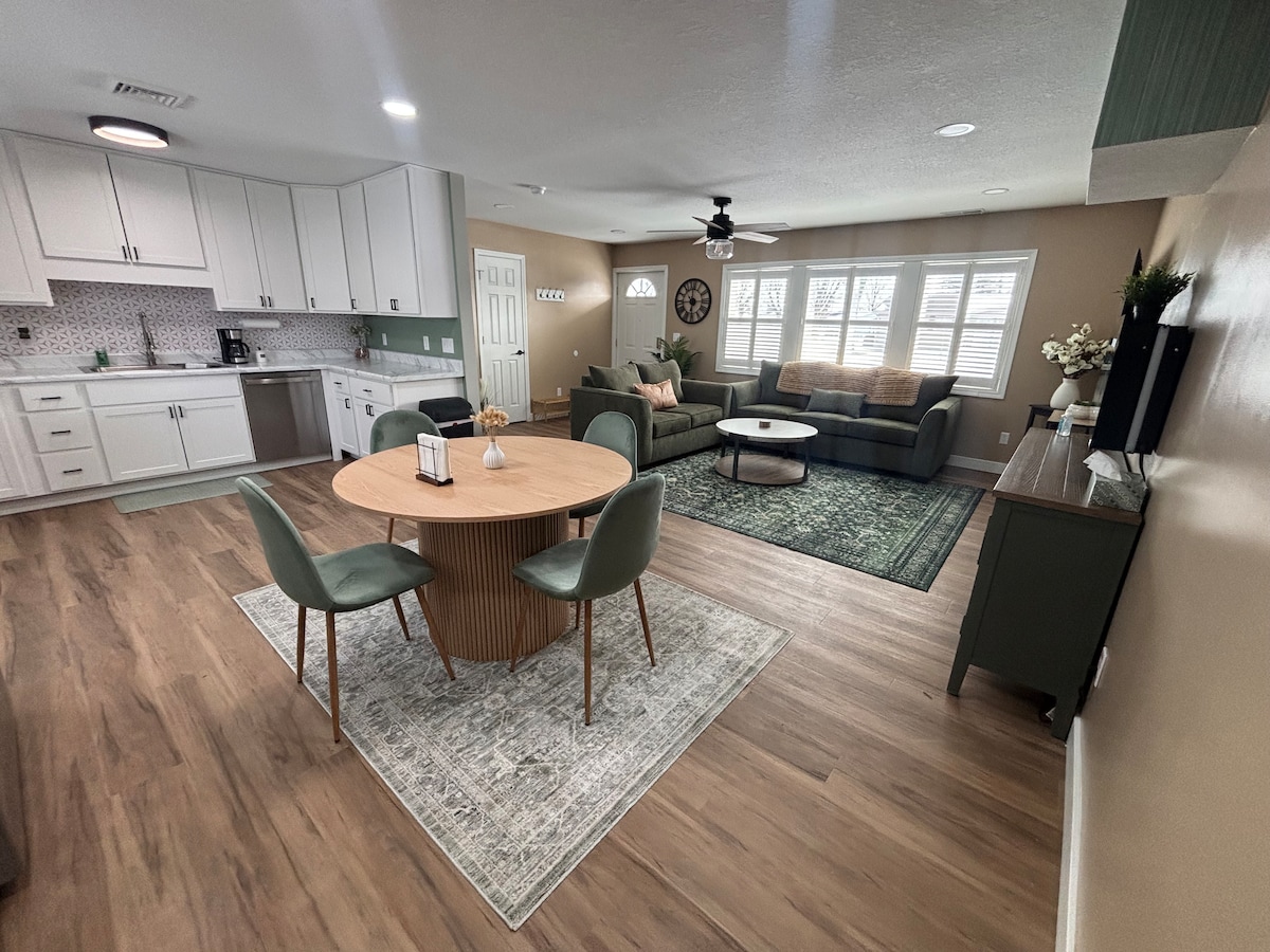 Ինքնուրույն ժամանում ։ Երթևեկության աղմուկն անվճար է ։ Այս հարմարավետ հյուրերի լոֆթը ստեղծվել է 2022 թվականի հունվարին ։ Մենք նստած ենք Մարիոնի կենտրոնական եզրին ՝ IWU - ից մոտ 8 րոպե հեռավորության վրա, քաղաքից 5 րոպե հեռավորության վրա և I -69 - ից 7 րոպե հեռավորության վրա ։ ԵՐԿՈՒ ննջասենյակ (յուրաքանչյուրն ունի հեռուստացույց և երկտեղանի ՄԱՀՃԱԿԱԼ), ՄԵԾ խոհանոց/ճաշասենյակ, ՀԱՐՄԱՐԱՎԵՏ հյուրասենյակ ՝ հեռուստացույցով/Roku - ով, և ԸՆԴԱՐՁԱԿ լոգասենյակ ։ ՄԱՔՐՄԱՆ ՎՃԱՐ և ԱՆՎՃԱՐ կայանատեղի չկա հենց ձեր դռան դիմաց ։ Անչափ շնորհակալ ենք Ֆիլիպի և Անդրեայի հյուրընկալած այս փոքրիկ տեղական բիզնեսին աջակցելու համար ։ ։)