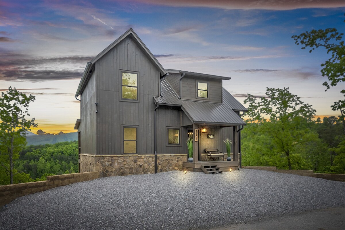 Escape to Three Pines Lodge, a stunning modern retreat bathed in natural light and surrounded by breathtaking mountain views. Enjoy the scenery through expansive windows or from the outdoor entertainment spaces. Designed for all ages, this luxury vacation home offers top-notch amenities, including a Hot Tub, Arcade Games, Peloton Bike, and more! Experience unparalleled comfort and create unforgettable memories with your family. Book your Smoky Mountain getaway at Three Pines Lodge today!