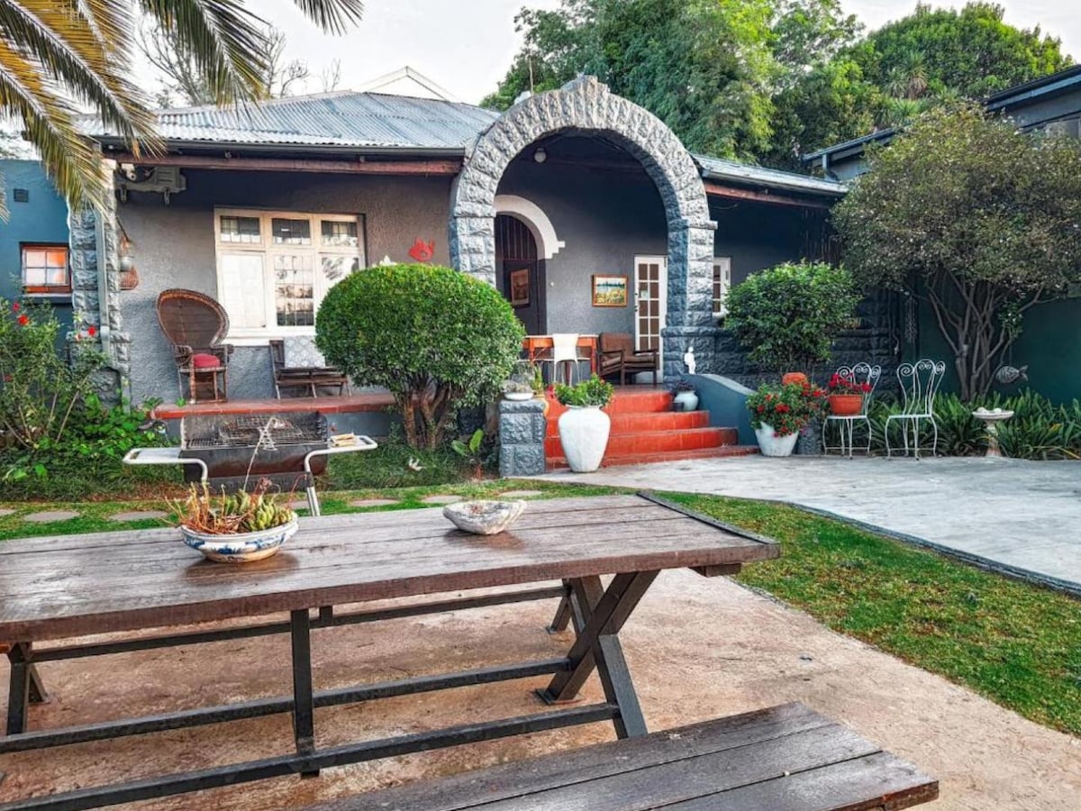 Թեթեւ լցված 1 ննջասենյակ, որը նայում է մի գեղեցիկ անխռով այգու ստվերում 100 - ամյա կաղնու ծառերով: Հետ en - Suite բաղնիք այն համապատասխանում է երկու եւ գտնվում է կենտրոնացված արվարձանում Rosebank/Dunkeld. Միայն արագ 10 րոպե քայլեք դեպի Գոթրեյն և Ռոզբանկի բիզնես հանգույցը ։ Rosebank - ն առաջարկում է գնումների հրաշալի փորձառություն, ինչպես նաև լավագույն ռեստորանները: Քաղաքի կենտրոնին, արվեստին և մշակույթին, զբոսայգիներին և Netcare Rosebank Hospital - ին մոտ գտնվելը այն դարձնում է շատ կենտրոնական ուղղություն: