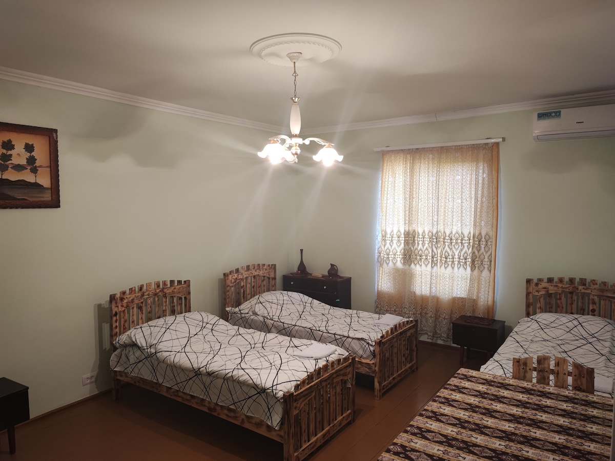 Двухэтажный каменный дом,420кв.м. Находится в тихом деревне Хаштарак,в 5 км от г.Иджеван.Все удобства для отдыха с семей.По радиусе 5 км есть бар,кафе,рестораны,супермаркеты,рынок .За отдельную плату предоставляется трансфер с аэропорта и обратно. В доме постоянно проживают хозяин с хозяйкой и присматривают за домом,за чистоту и порядок