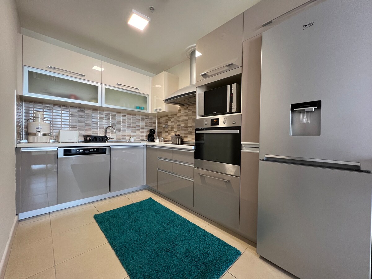 Stay in a modern, light-filled apartment in Cevahir Sky City, fully equipped for both short and long stays, with 24/7 reception and private parking for a secure and comfortable experience. You’ll also have free access to the on-site wellness centre, including a spa, pool, and gym. A shopping mall is located just steps from the building, offering restaurants, cafés, a supermarket, a pharmacy, and everything you may need during your stay.