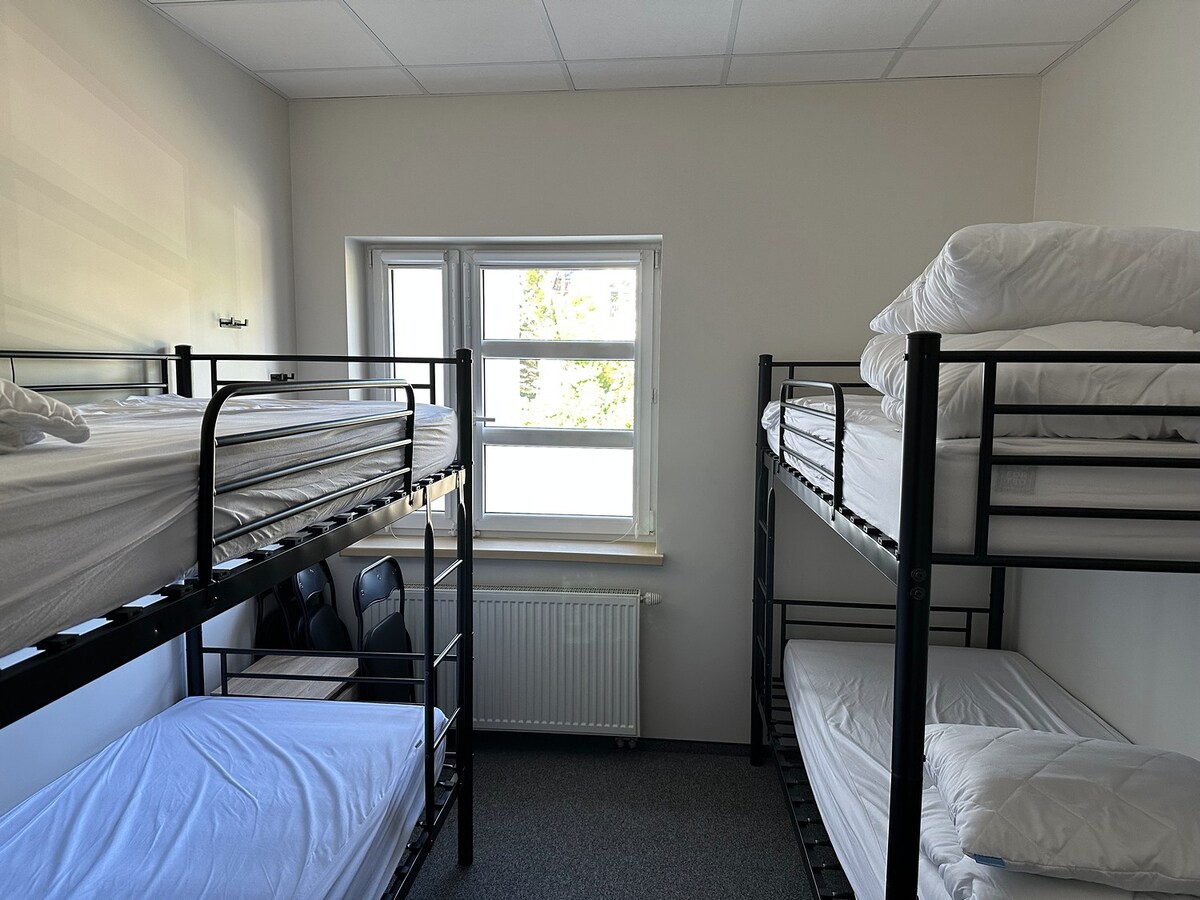 Pokój 4-osobowy na piętrze, 2 łóżka piętrowe. Zapewniamy pościel i ręczniki. Wspólna łazienka na korytarzu.