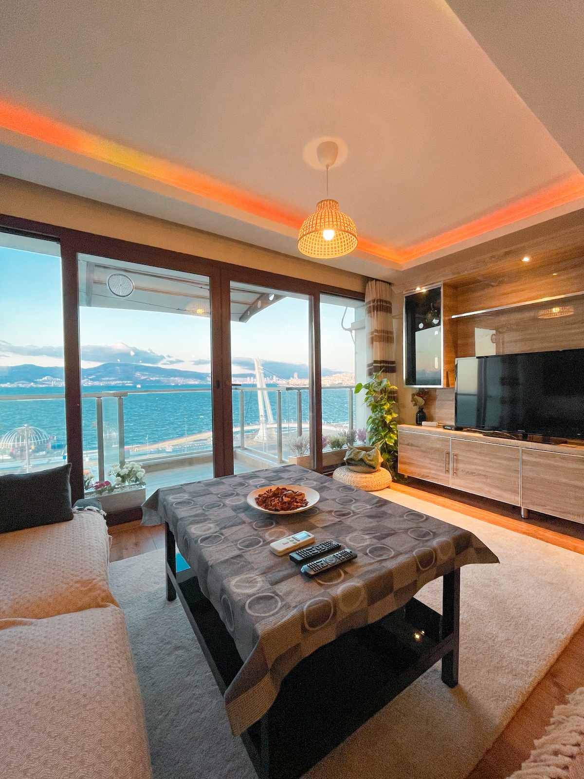 Հիասքանչ բնակարան Գյուսելալիում ՝ ծովի դիմաց ։ Սա լավագույն տեսարանն է, որը կարող եք գտնել Airbnb - ում ՝ Իզմիրում ։ Քաղաքի կենտրոնում բոլոր բարերը, ռեստորանները, սրճարանները գտնվում են մեր բնակարանից ներքև: 3 A/C բնական գազի ջեռուցում, Ambilight Tv եւ ձայնային համակարգ, լոգարան, բոլորը պատրաստ են ձեր մնալու համար: Մեր մաքրման թիմը նաև մաքրում է ամեն ինչ նախքան ձեր ժամանումը ։ Բացի այդ, մենք ունենք ՀԱՏՈՒԿ ԿԱՅԱՆԱՏԵՂԻ(ֆուրգոններ չեն թույլատրվում): Դուք կարող եք գալ ձեր մեքենայով շատ հեշտ է. Մեր շենքն ունի վերելակ, այնպես որ աստիճաններով բարձրանալու կարիք չկա ։