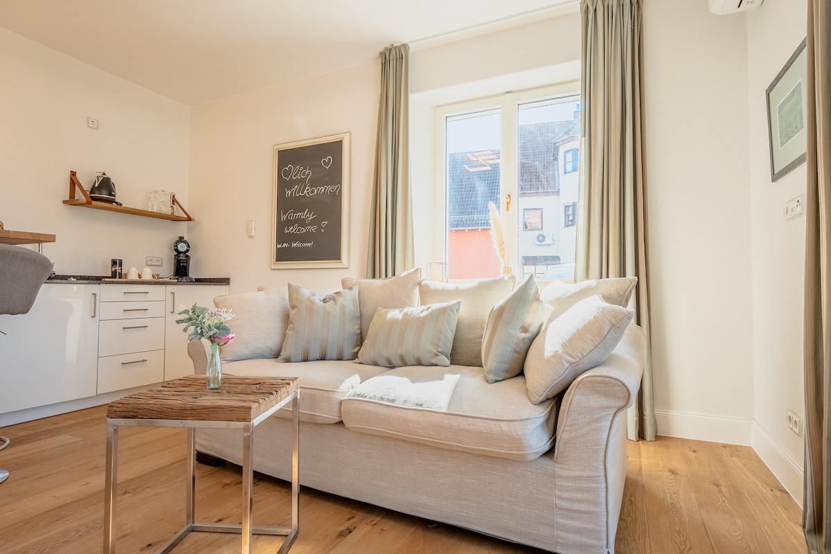 Genieße einen ruhigen und zentral gelegenen Rückzugsort in einem hübschen Gelnhäuser denkmalgeschütztem Haus. Altstadt mit Kaffees und Restaurants wenige Gehminuten nah. Blick auf die Kinzig und Spessart und die Heinrichshöhe für erholsame Spaziergänge oder eine forderndere Wanderung oder Mountainbiketour gleich hinter dir.