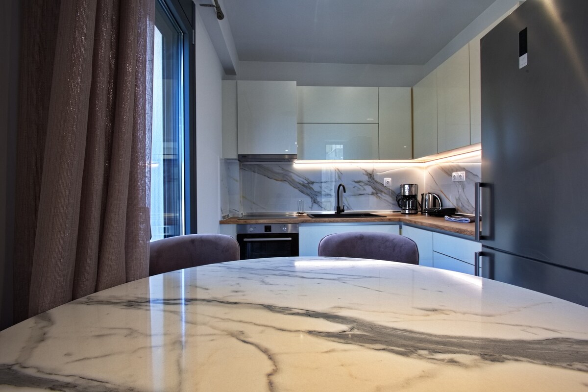 Զգացեք քաղաքը ՎԵՐԵՒԻՑ ՝ Սալոնիկի սրտում գտնվող մեր պրեմիում տանիքի առանձնատանը, որը գտնվում է աշխույժ Լադադիկա թաղամասի մոտակայքում ՝ Արիստոտել հրապարակից ընդամենը 5 րոպե հեռավորության վրա ։ Վայելեք ծովի և քաղաքի լանդշաֆտի հիասքանչ տեսարանները ՝ բացօթյա ջակուզիով և հարմարավետ հանգստյան գոտիով: Ներսում վայելեք հանգիստը ՝ օգտվելով լոգարանի շքեղ փորձառությունից ։ Կատարյալ է ռոմանտիկ հանգստի կամ հանգստի համար ։