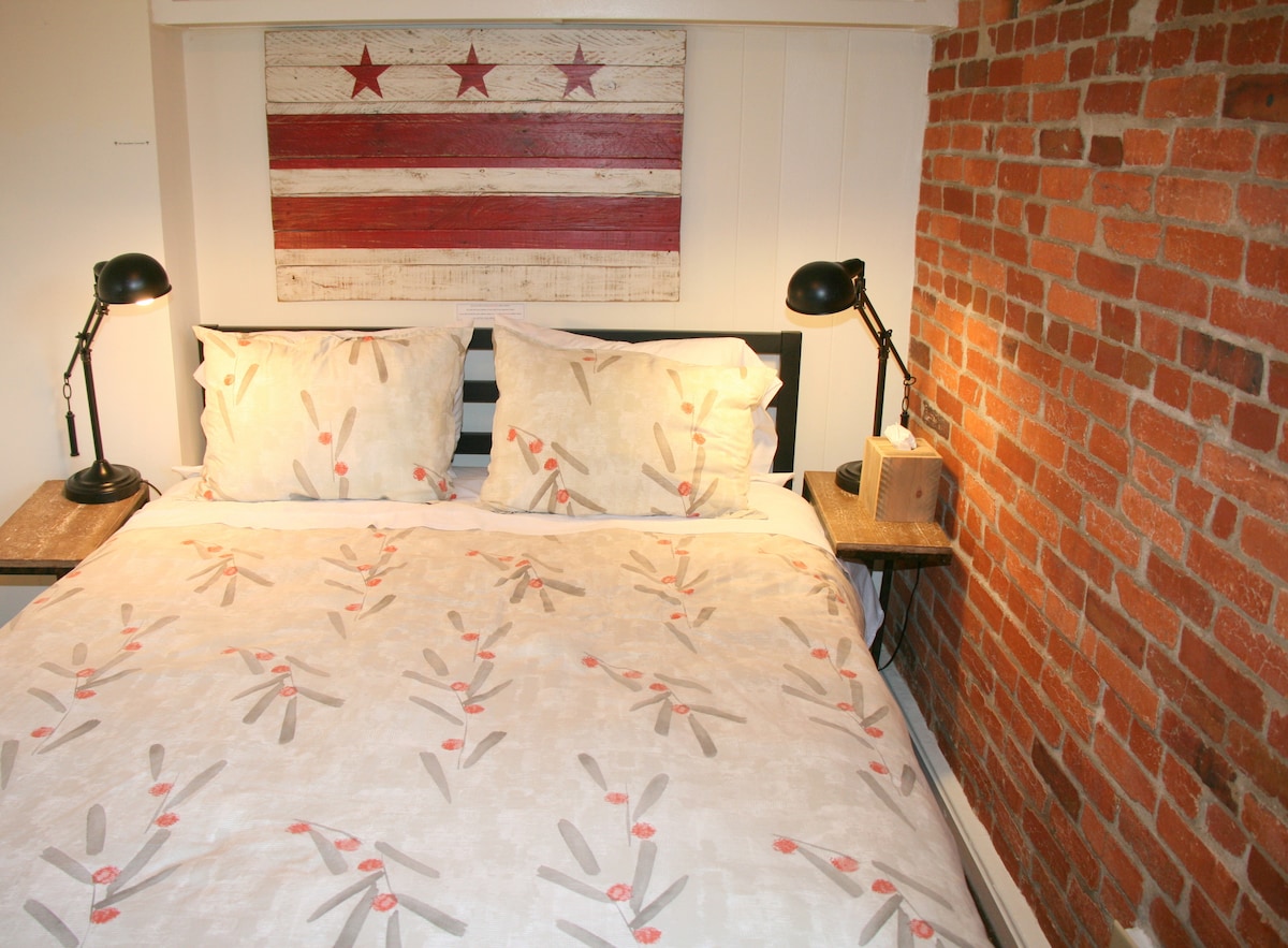Հարմարավետ բնակարան 1875 թվականին, պատմական DC թաղամասում ։ Տեղադրություն, տեղադրություն ։ Ննջասենյակ, խոհանոց/հյուրասենյակ, լոգասենյակ, լվացքատուն, ընդարձակ միջանցք ։ Բոլորովին նոր երկտեղանի մահճակալ ։ Պահարաններ aplenty. Խոհանոցային հիմնական պարագաներ գումարած!. Լիցենզավորված ՝ DC Regulatory and Consumer Affairs ։ Հիանալի սննդի կետերին, հացաբուլկեղենի, բարերի, շոփինգի, ջրափնյա գծի մոտ ։ Ավտոբուսներ, հեծանիվների/սկուտերների վարձույթ մոտակայքում: Նեղ աստիճաններ փողոցից: Բնակելի կայանատեղի ՝ տանտիրոջ կողմից ձեռք բերված թույլտվությամբ ։