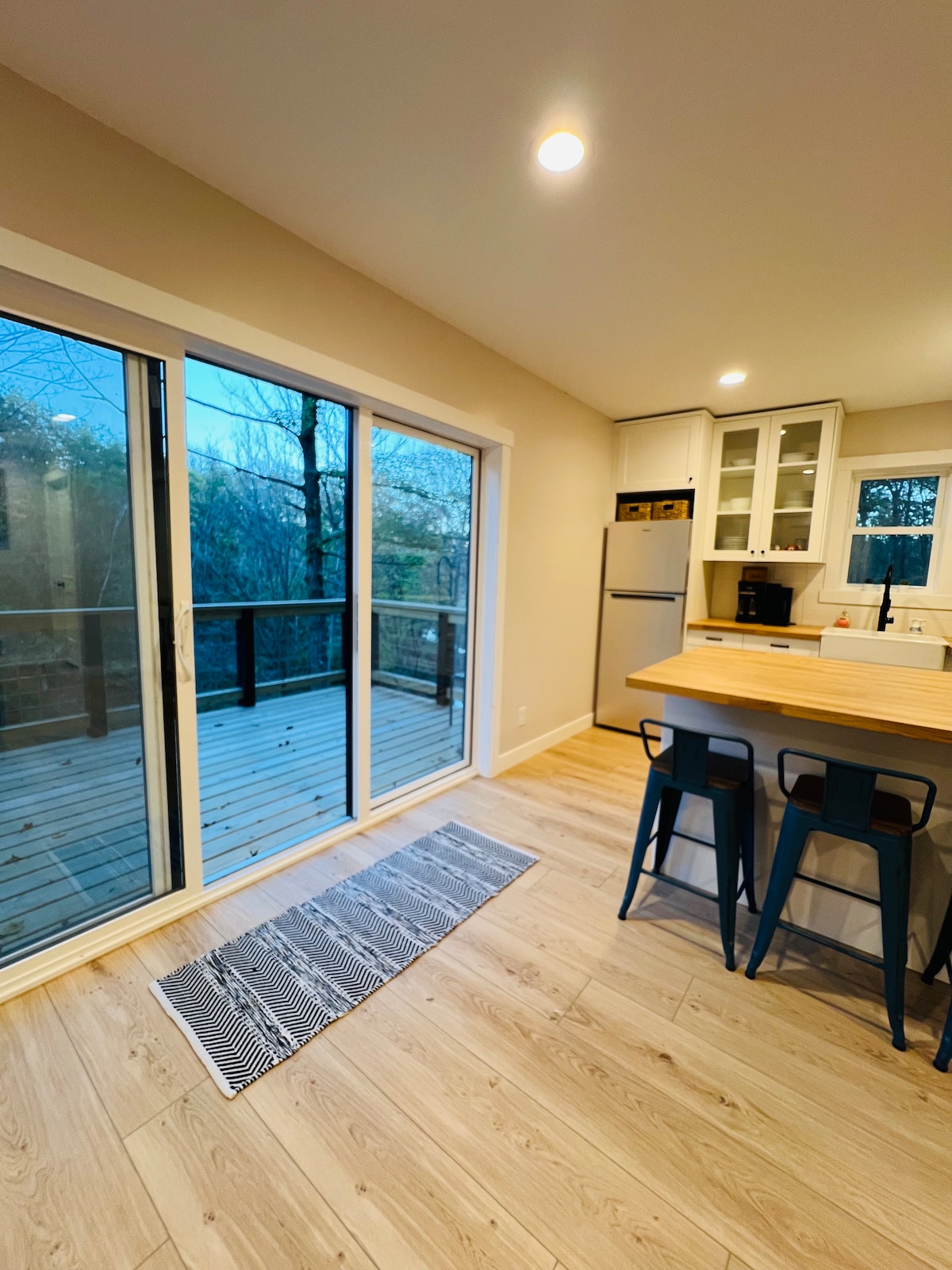 Հեռավոր, անխռով, հանգիստ և չափազանց մասնավոր հանգիստ անմիջապես պաշտպանված գետի ափին ՝ Երկվորյակ քաղաքներից ընդամենը 1,5 ժամ հեռավորության վրա ։ Նույնիսկ այնտեղ գեղեցիկ քշելը հանգստանում է: Մտեք անտառի խորքում խաղաղության և հանգստության աշխարհ ։ Համեղ կերակուրներ պատրաստեք լավ կահավորված ժամանակակից բարձրակարգ խոհանոցում, խաղացեք գետում, հանգստացեք շոգեբաղնիքում կամ խարույկ վառեք: Սա ձեր տիպիկ տնակը չէ, այլ հոգևոր էկո - օազիս ՝ ժամանակակից, գյուղական, բնիկ ամերիկյան և ճապոնական գեղագիտության յուրահատուկ էկլեկտիկ խառնուրդով: