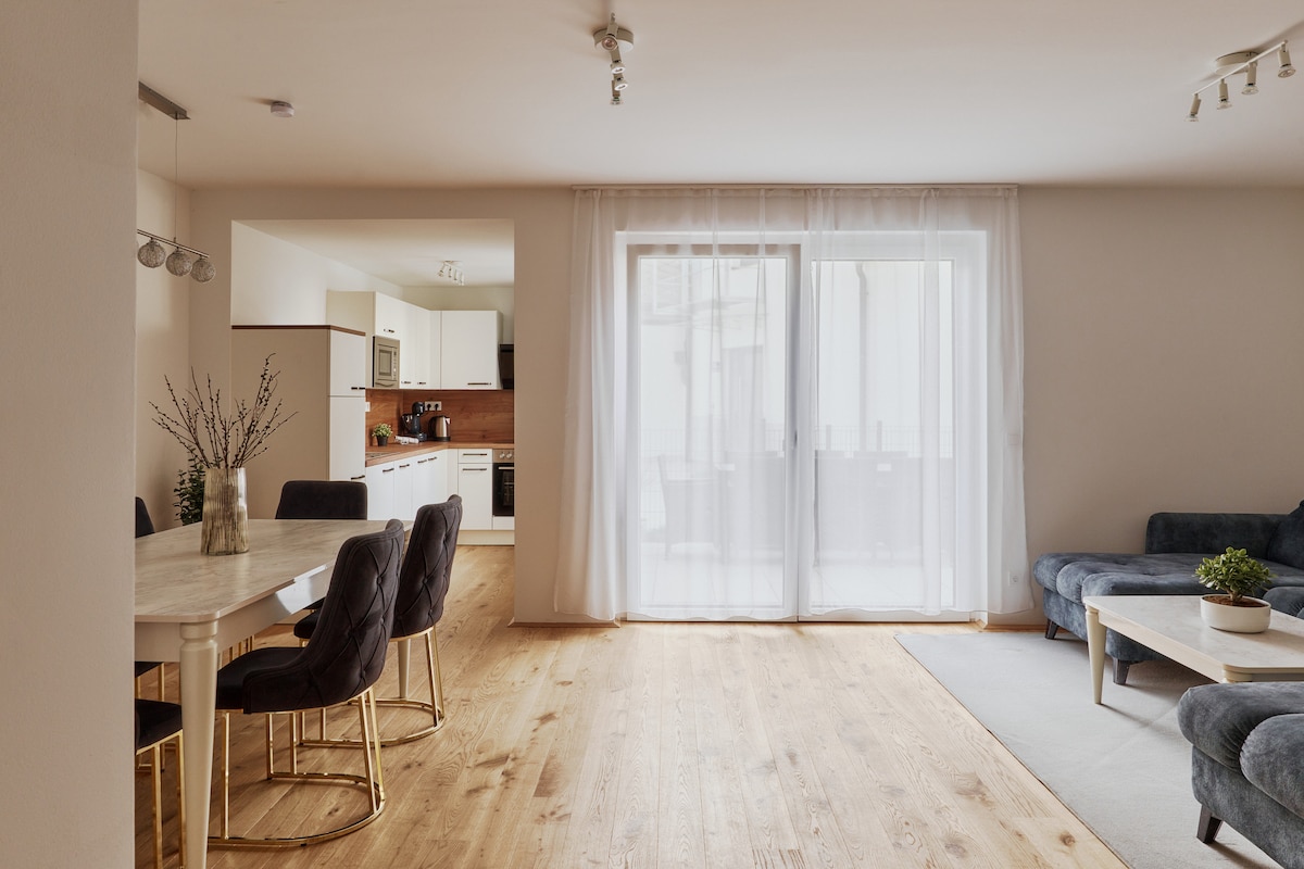 Welcome to the NobleNest Penthouse in Vienna! Modern penthouse with private lift access directly into the apartment, two spacious rooftop terraces and an open living concept. Perfect for a special stay above the rooftops of the city. → Lift directly into the apartment → Rooftop terraces with sun loungers & dining area → Open bathroom in the bedroom → 58-inch Smart TV → Box spring bed → Kitchen, washing machine, workspace → View into greenery & underfloor heating → Stylish designer chair