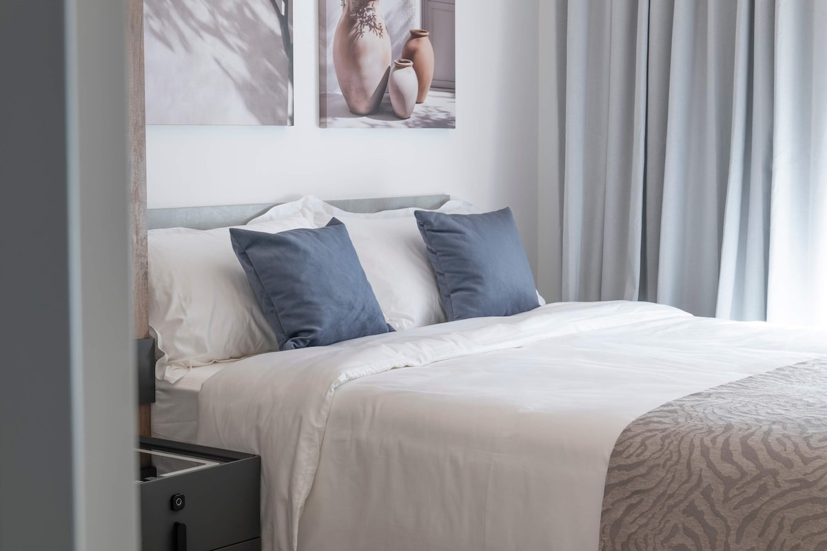 Spacious 1-bedroom suite in boutique hotel near Limassol beaches. Separate bedroom and living area, fully equipped kitchen, private balcony. Accommodates up to 4 guests with premium amenities including smart TV, Wi-Fi, washing machine. Pool, rooftop gym, garden bar on-site. Located in peaceful Germasogeia, minutes from marina, restaurants, and attractions. Perfect for couples, families, or business travelers.