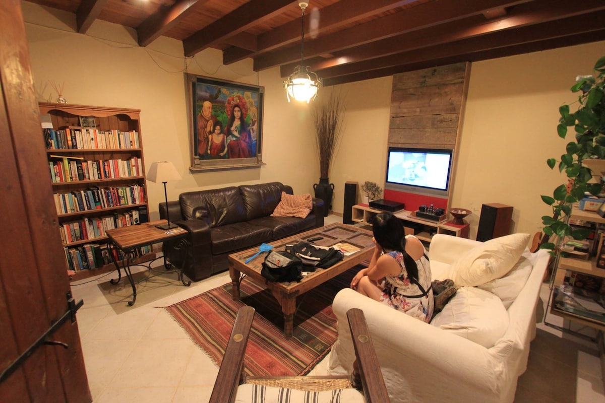 Ընդարձակ և լուսավոր առանձին սենյակ այգու տեսարաններով մեկ կամ երկու հոգու համար ։ Տունը գտնվում է գյուղում և առաջարկում է վարձով տարածք, որտեղ կարող է տեղավորվել մինչև հինգ մարդ ։ Այս սենյակում կա 140 սմ X 190 սմ մահճակալ ՝ սավաններով, բարձերով և դյուվետներով, մեծ պահարանով ՝ զգեստապահարանով և դարակներով ։ Ձեղնահարկի լոգասենյակը ընդհանուր է հյուրերի համար և գտնվում է նույն հարկում ։ Այն ներառում է երկու լվացարան, ցնցուղ, լոգարան, լոգարան ՝ լոգարանի սրբիչներով: