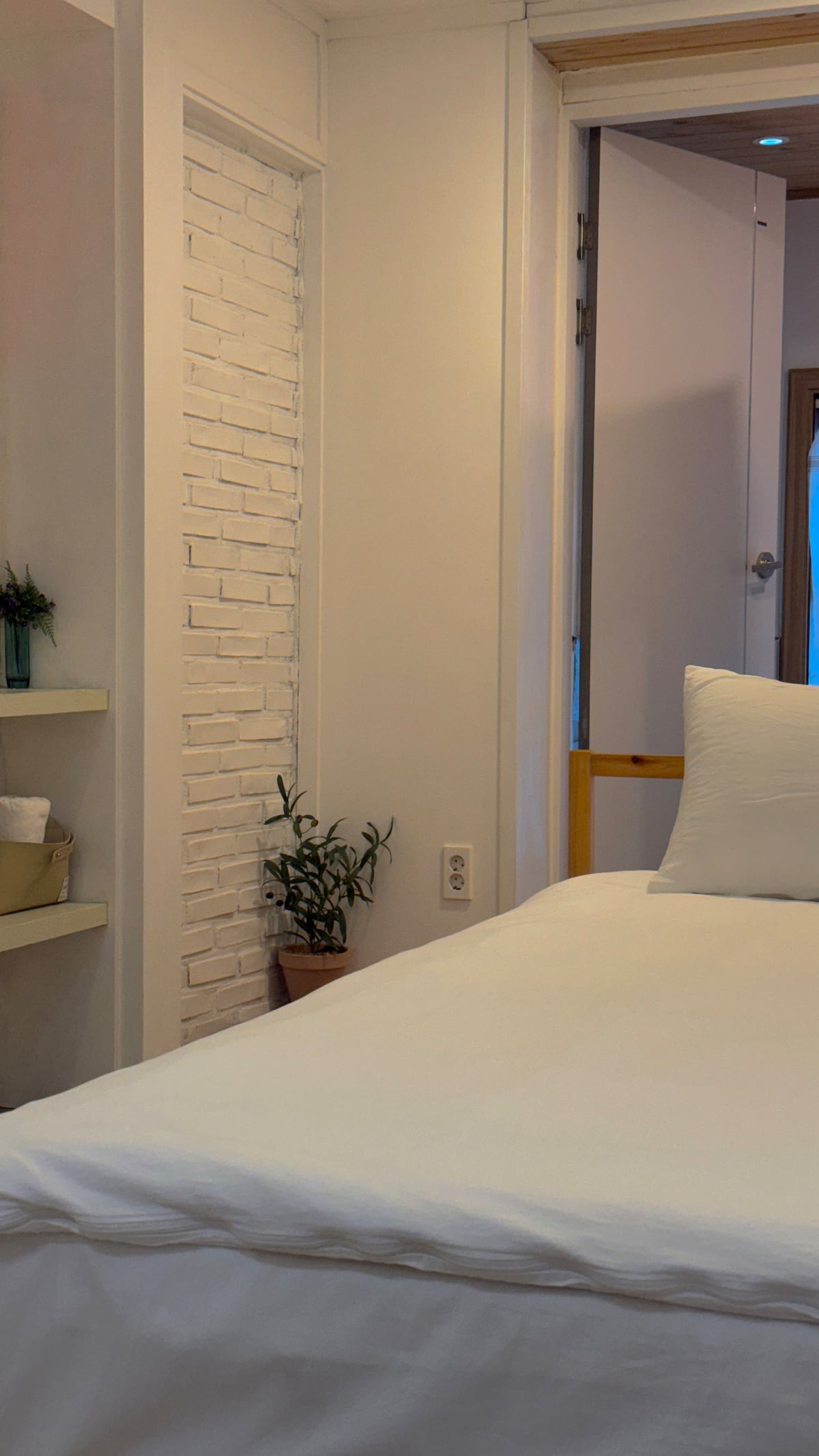 " 한림속하루" 입니다. "모들"에 관심을 주셔서 감사합니다. ; ) * 흑백사진 이벤트를 진행중입니다. 궁금하신 사항은 문의주세요.^^ 한림속하루에는 "모들"과 "다솜" 이 있어요.^^ 현관문을 열고 들어가시면 거실에는, 스튜디오풍의 조명과 TV와 쇼파가 자리 잡고 있습니다. 거실 정면의 창에는 작은 바테이블(bar table )이 있어 작은 뒷마당의 조경을 보시며 차(Tea)나 간식 등을 드실 수 있습니다. 물론 와인 한잔 하시기엔 그만이죠. 전자레인지와 포트가 준비되어있고요. 침실 공간 앞에는, 4~6인용 원목 테이블이 있습니다. 이 공간에서 하루를 메모하시며 간식 등을 드실 수도 있고요. 일정을 정리하거나 계획하실 수 있는 정도의 넓은 테이블입니다. 거실 공간은 스튜디오 풍 조명으로 편안하게 쉬실 수 있게끔 정리되어 있습니다. 침실은 커다란 퀸침대와 아기자기한 화장대가 편한한 조명 아래 자리 잡고 있습니다.