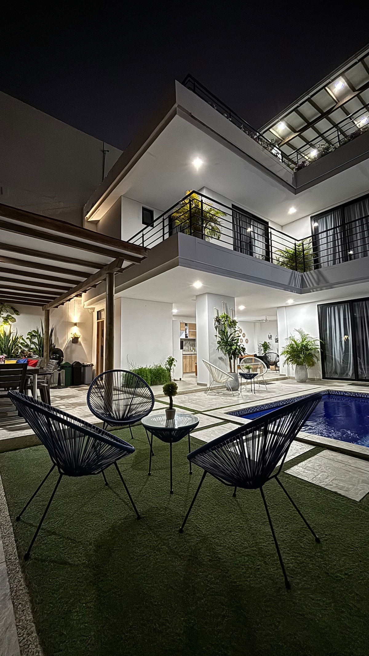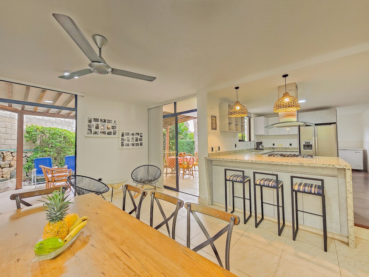 Լավագույն ավանդական ճարտարապետությունը և մինիմալիստական ոճի ձևավորումը ՝ արդիականության շտրիխներով, որոնք ավելացրել են հանգստի ոգեշնչող մթնոլորտը, ձեր հանգիստը կդարձնեն անմոռանալի փորձառություն ՝ ընտանիքի և ընկերների հետ կիսվելու համար: Վայելեք ծառերով և պարտեզով շրջապատված մասնավոր լողավազանը ։ Գտնվում է Սանտա Մարտայի պատմական կենտրոնում ՝ լողափից 4 թաղամաս հեռավորության վրա, ռեստորաններին և սուպերմարկետներին մոտ ։ Մենք ունենք 3 տեսախցիկ, որոնք գտնվում են լողավազանի տարածքում գտնվող բացօթյա պատիոյում ։